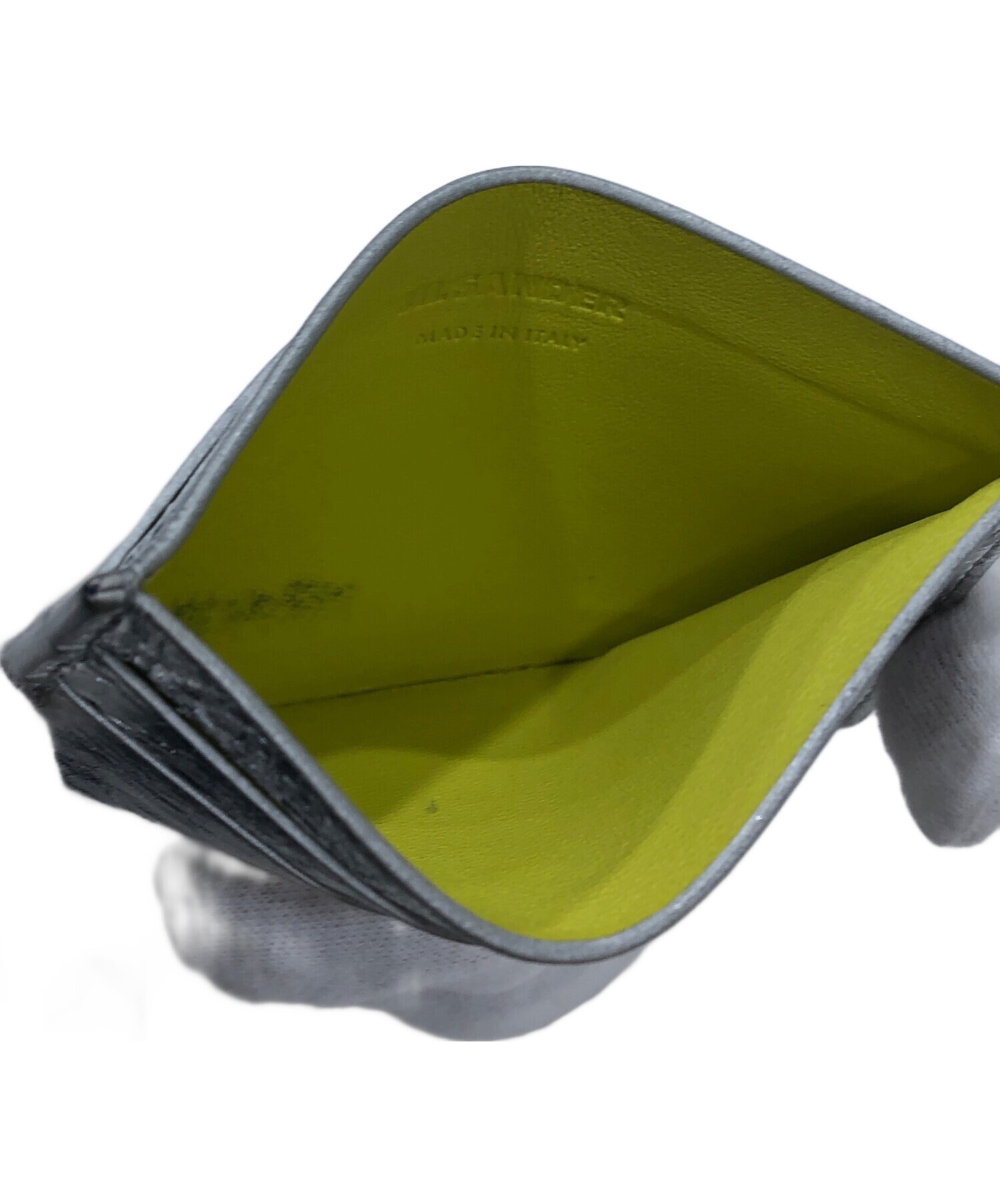 • JIL SANDER(ジルサンダー)JIL SANDER (ジルサンダー) ロゴレザーカードケース シルバーの古着・服飾アイテム 内部ヨゴレ有