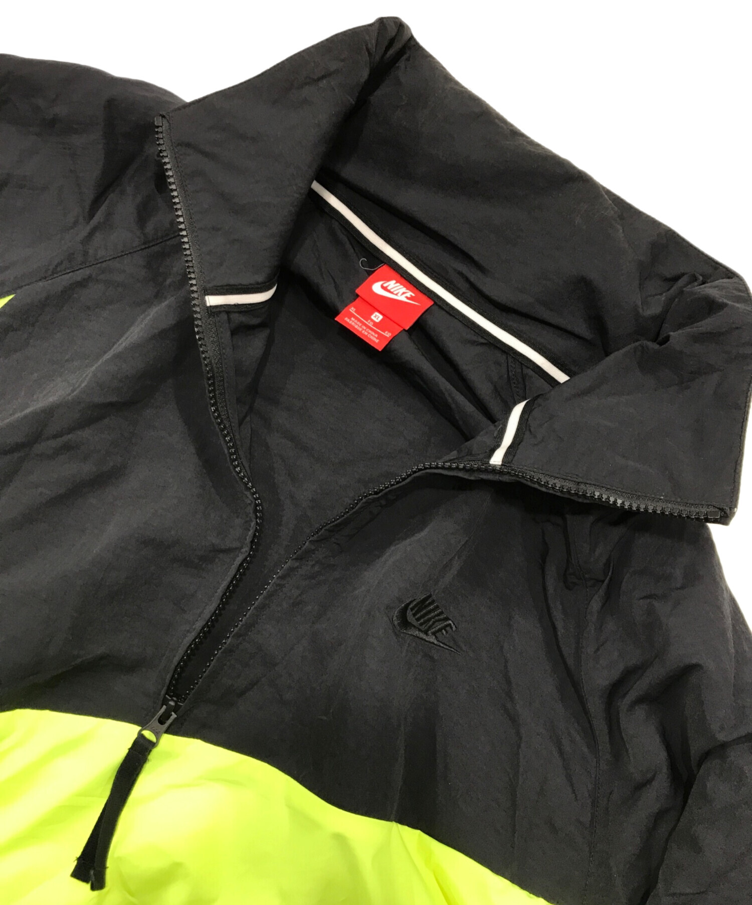 • NIKE(ナイキ)NIKE (ナイキ) アノラックウーブンジャケット/ラグランスリーブジャケット 黄緑×ブラック サイズ:XLの古着・服飾アイテム 袖ヨゴレ有
