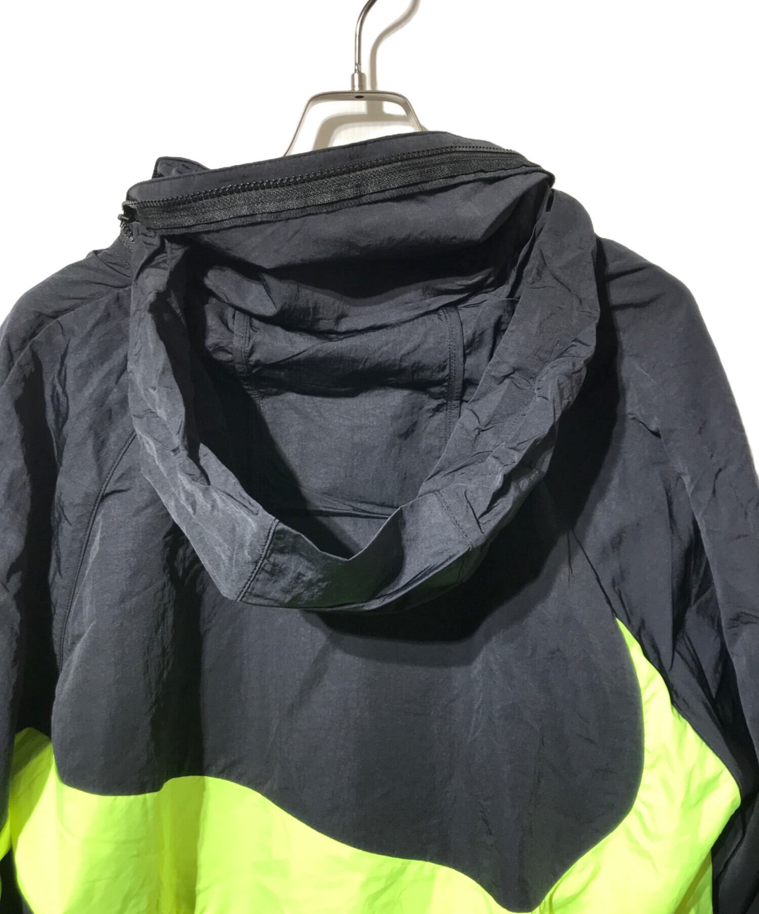 • NIKE(ナイキ)NIKE (ナイキ) アノラックウーブンジャケット/ラグランスリーブジャケット 黄緑×ブラック サイズ:XLの古着・服飾アイテム フード付き(収納可)