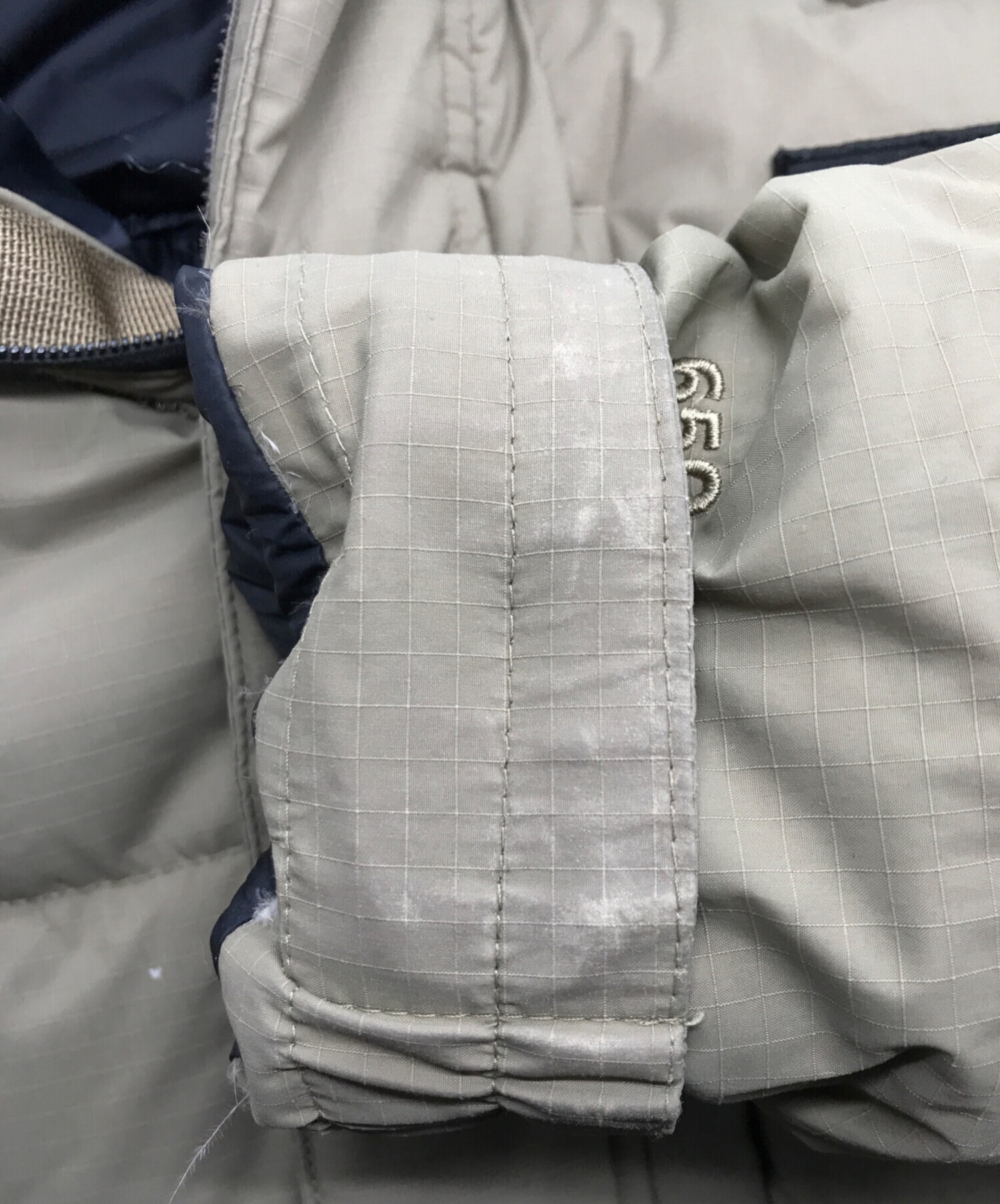 • MOUNTAIN HARD WEAR(マウンテンハードウェア)MOUNTAIN HARD WEAR (マウンテンハードウェア) ネバダンダウンジャケット ベージュ サイズ:Mの古着・服飾アイテム 襟変色大