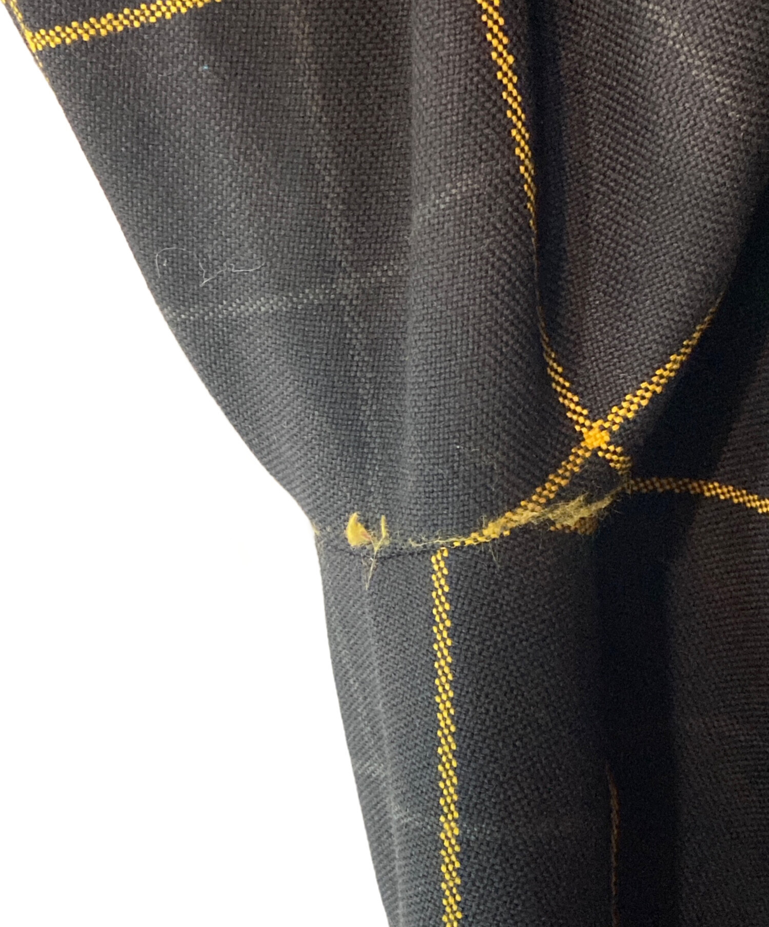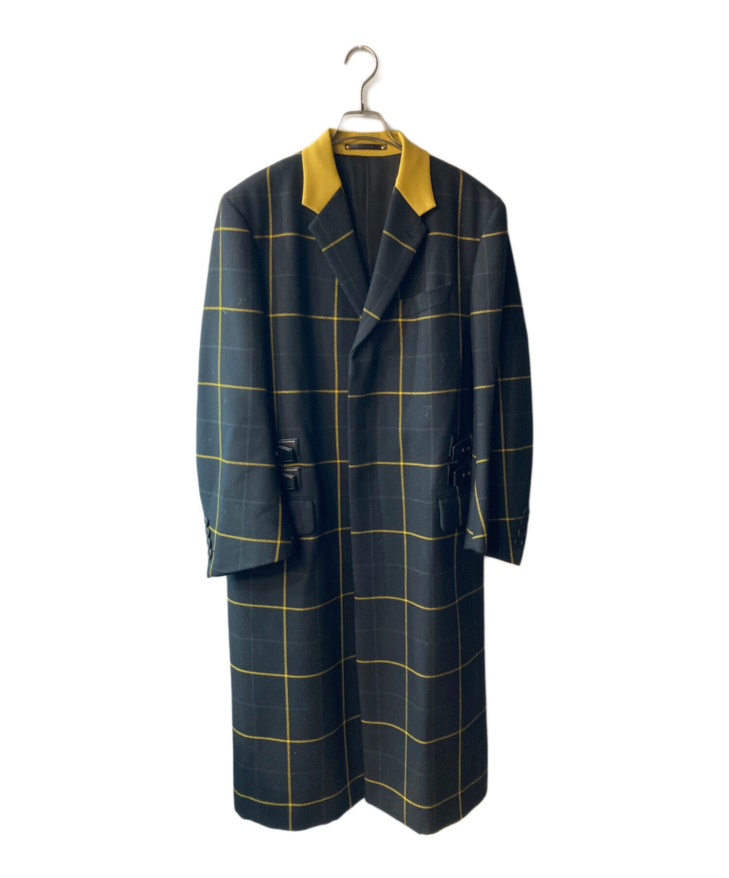 • PAUL SMITH(ポールスミス)Paul Smith (ポールスミス) タッターソール チェック チェスターコート ブラック×イエロー サイズ:Lの古着・服飾アイテム 脇スレ有