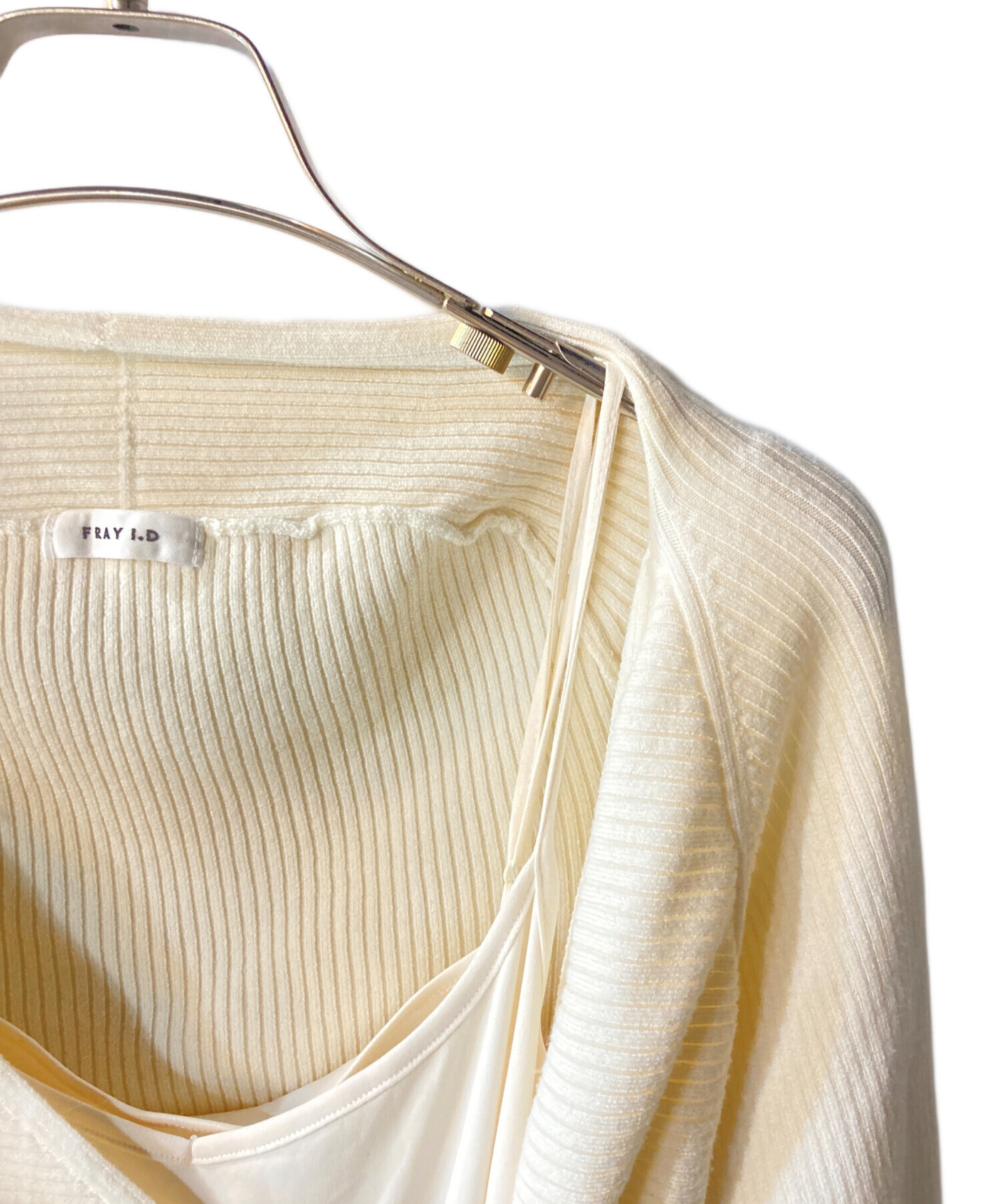 • FRAY ID(フレイ アイディー)FRAY ID (フレイ アイディー) ニットドッキングカシュクールワンピース アイボリー サイズ:Sの古着・服飾アイテム フロント内部ツレ有