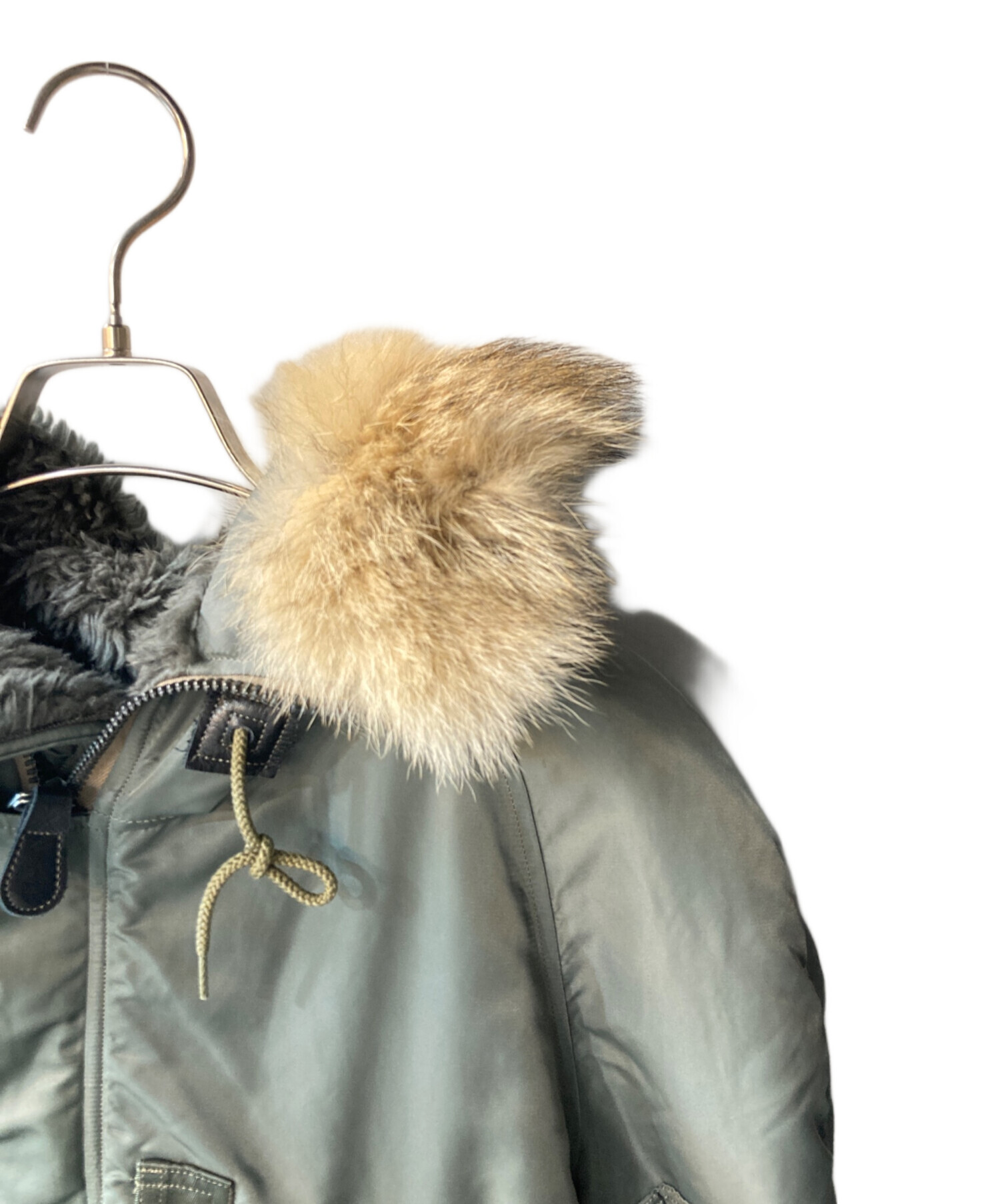 | 素材 | 表地: ナイロン 100% 裏地: ナイロン 100% 詰物: ウール 60% コットン 40% フード裏: アクリル 100% リブ: ウール 100% 毛皮部分/レザー部分: 馬革 |