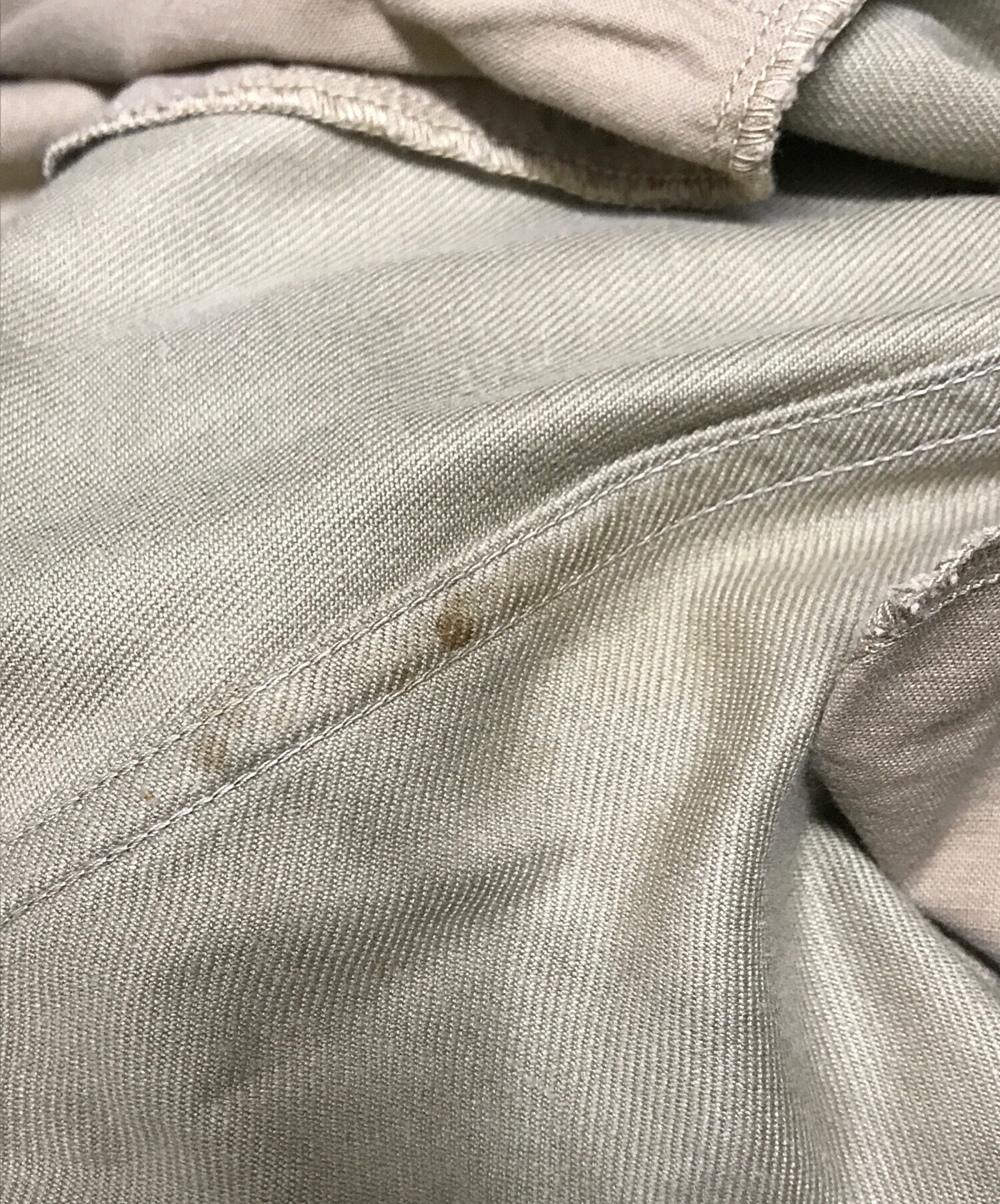 目立つシミや汚れ、におい等がある場合は商品画像や説明文にて極力表記させていただいておりますが、中古品という商品の特性上、全ての瑕疵や不備、洋服直し箇所を撮影・記載をすることは難しくなっております。また、ほとんどのアイテムは店頭と併売しておりますため、出品掲載時からコンディションが変動している場合もございます。あらかじめご了承くださいませ。