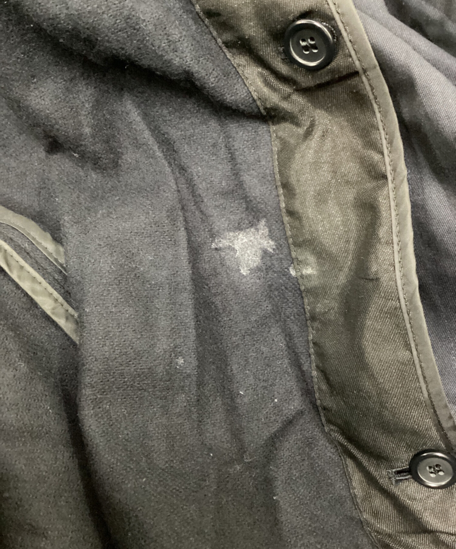 目立つシミや汚れ、におい等がある場合は商品画像や説明文にて極力表記させていただいておりますが、中古品という商品の特性上、全ての瑕疵や不備、洋服直し箇所を撮影・記載をすることは難しくなっております。また、ほとんどのアイテムは店頭と併売しておりますため、出品掲載時からコンディションが変動している場合もございます。あらかじめご了承くださいませ。