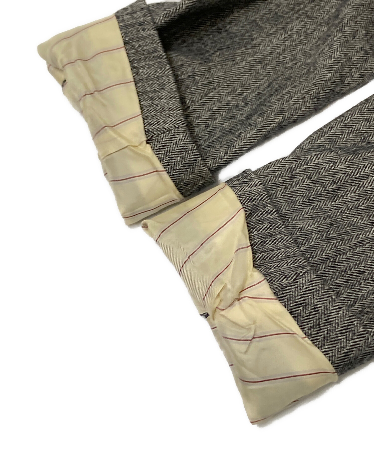 | 素材 | 表地:毛44%、ポリエステル27%、レーヨン15%、ナイロン11%、ポリウレタン3% 裏地:キュプラ100% |