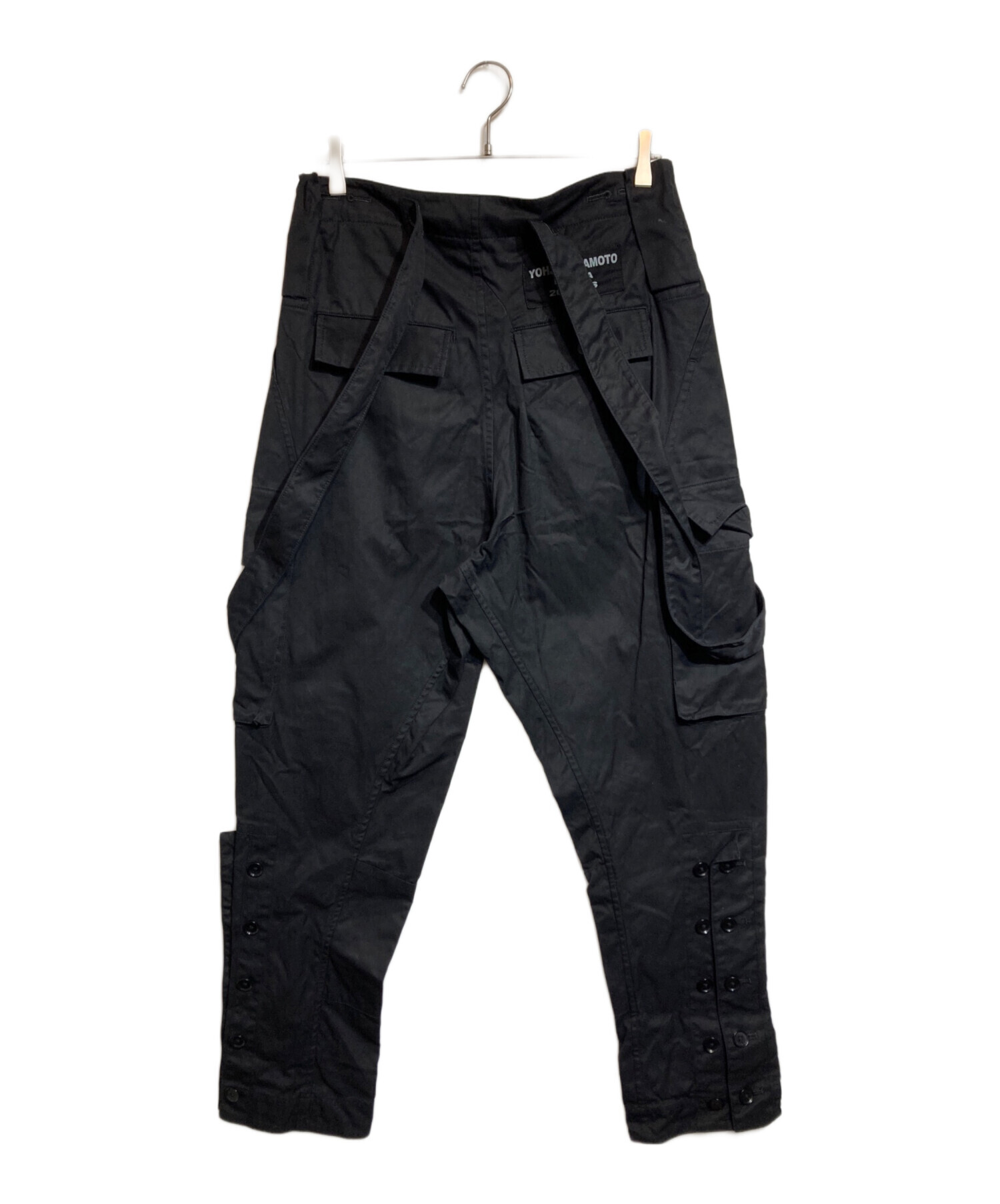 • Yohji Yamamoto pour homme(ヨウジヤマモト プールオム)Yohji Yamamoto pour homme (ヨウジヤマモト プールオム) サスペンダーカーゴパンツ ブラック サイズ:3の古着・服飾アイテム ウエスト内部ヨゴレ有