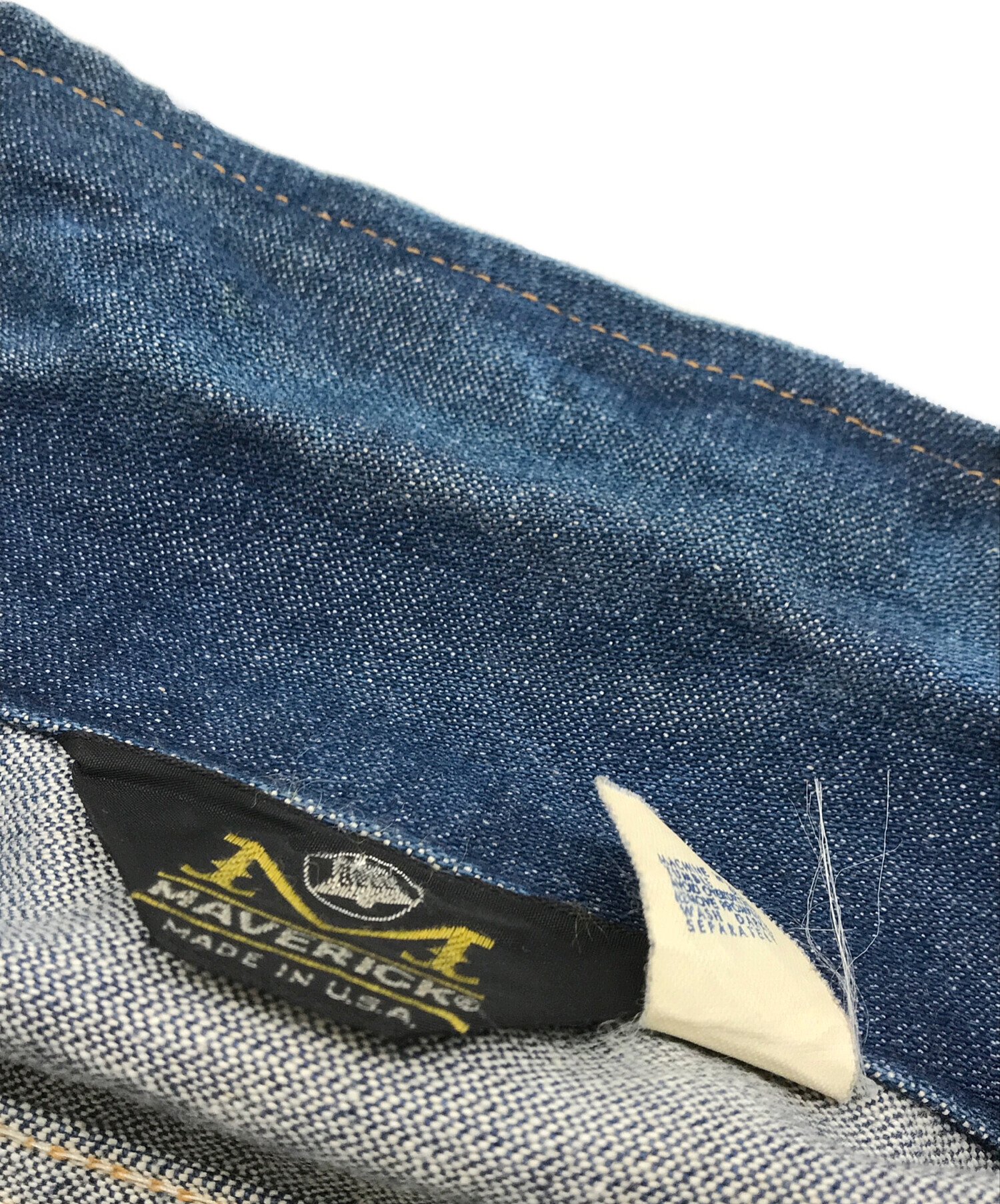 スタッフコメント 70年代マーベリックのデニムジャケット。インディゴの風合いと縦落ちが、ヴィンテージ特有の武骨なアメカジスタイルを演出します。