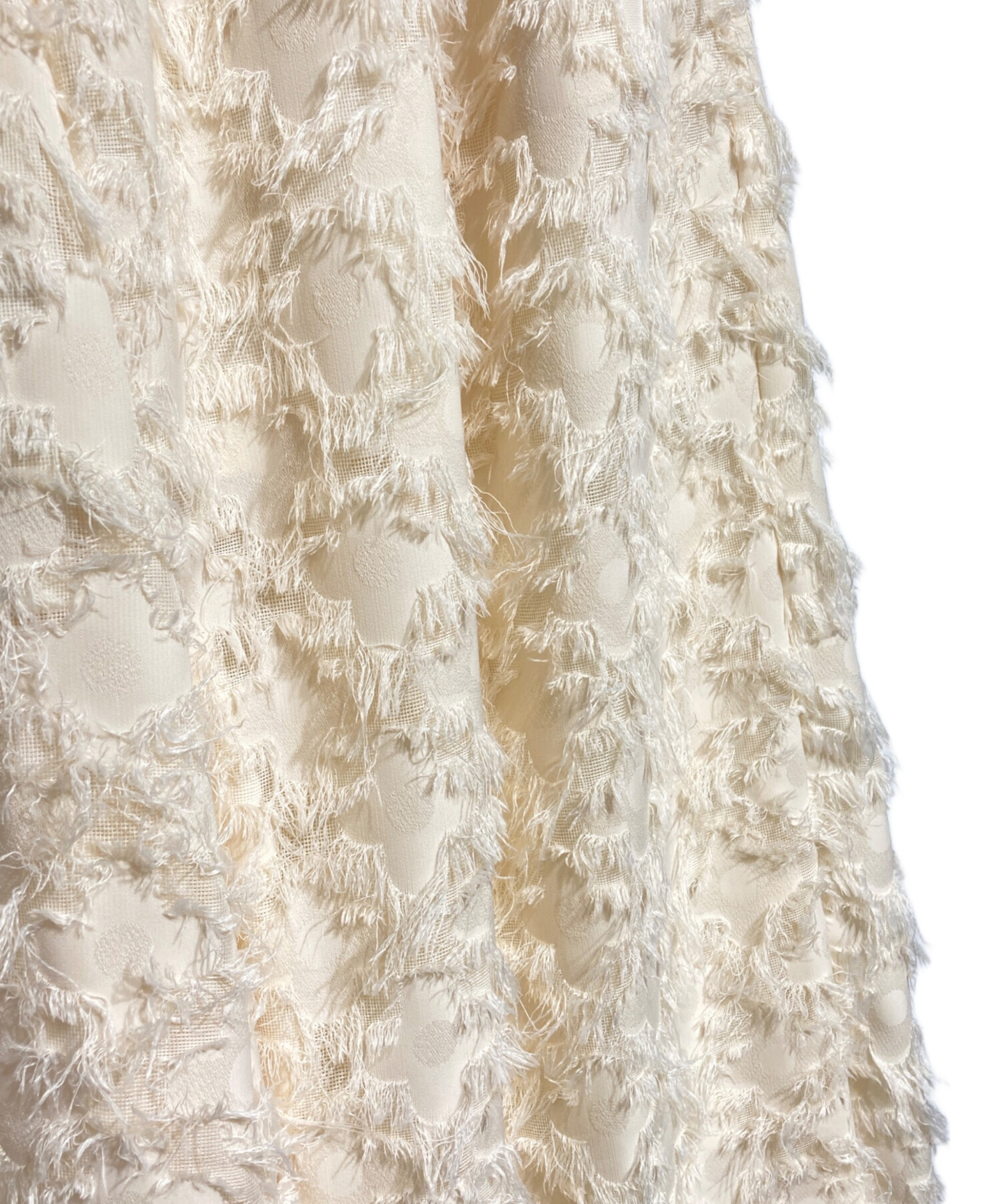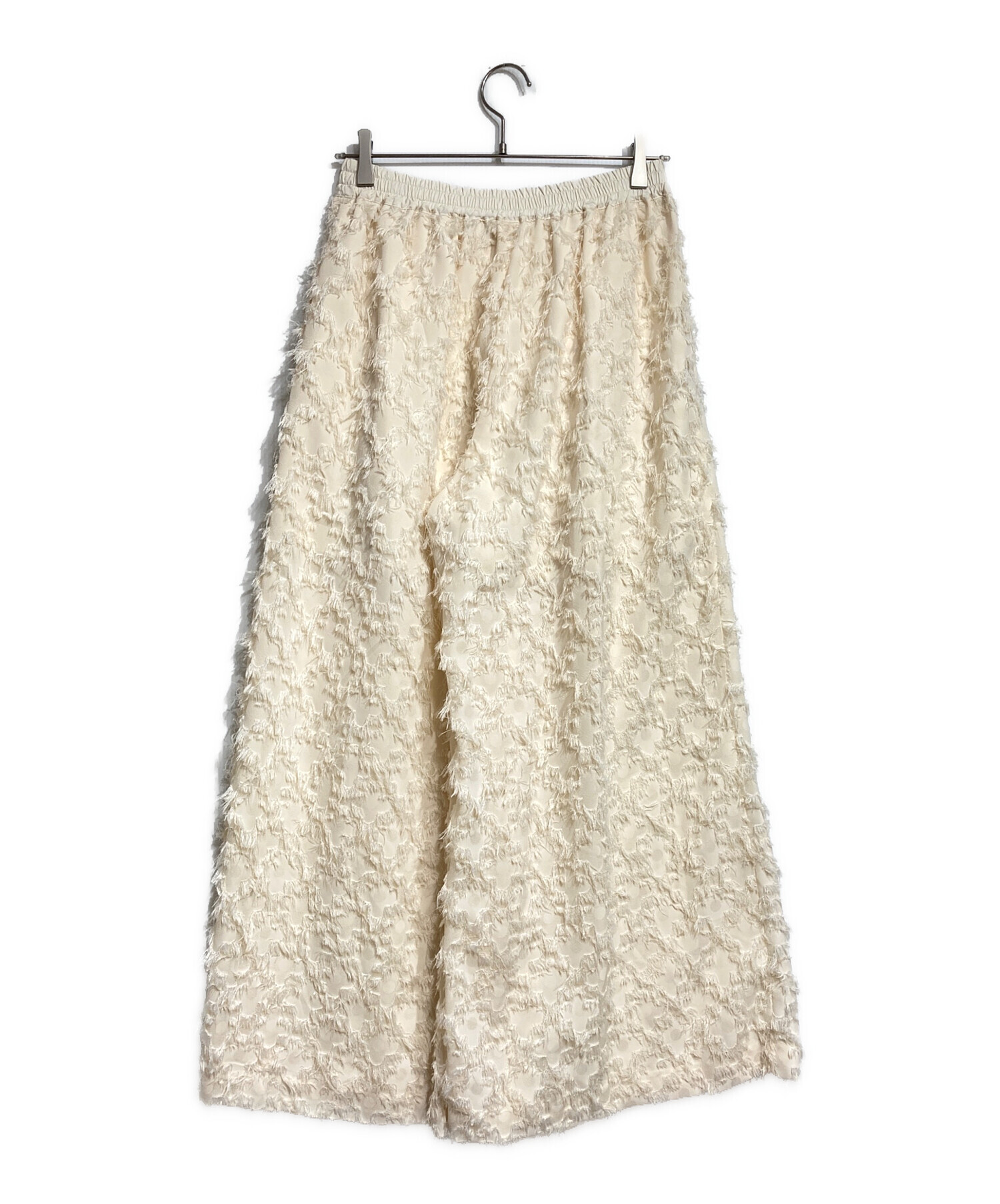 | スタッフコメント | Cygneらしい華やかなカットジャガードが目を惹くパンツ。立体感のあるフリンジのような素材感が、装いに奥行きとモダンな表情を添えます。洗練されたシルエットが美しく、シンプルなトップスを合わせるだけで凛とした佇まいを演出する一着です。 |