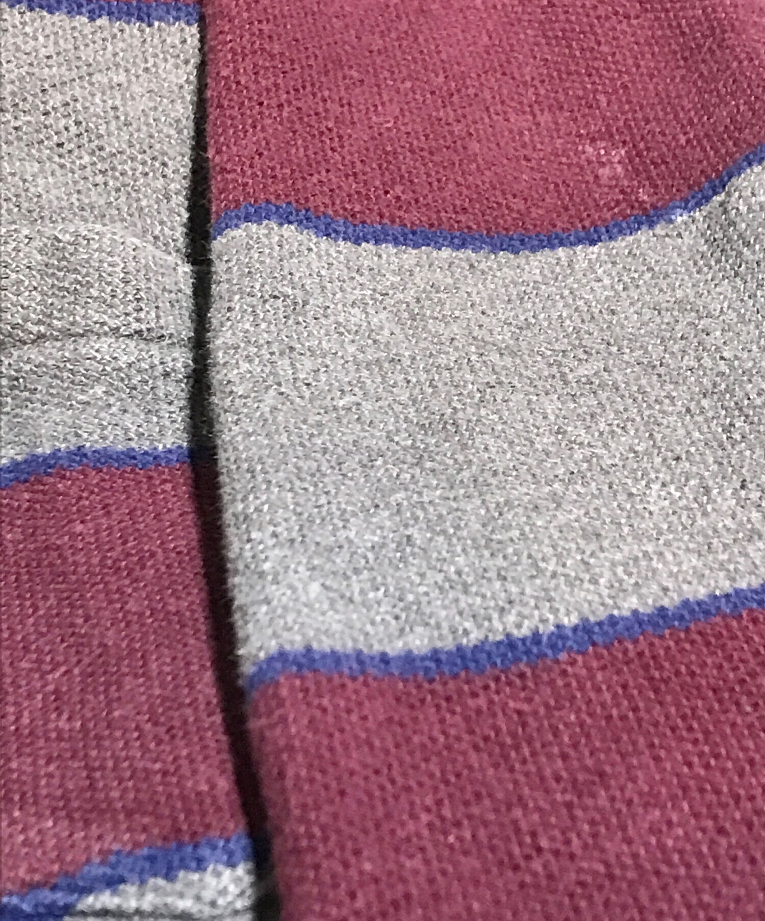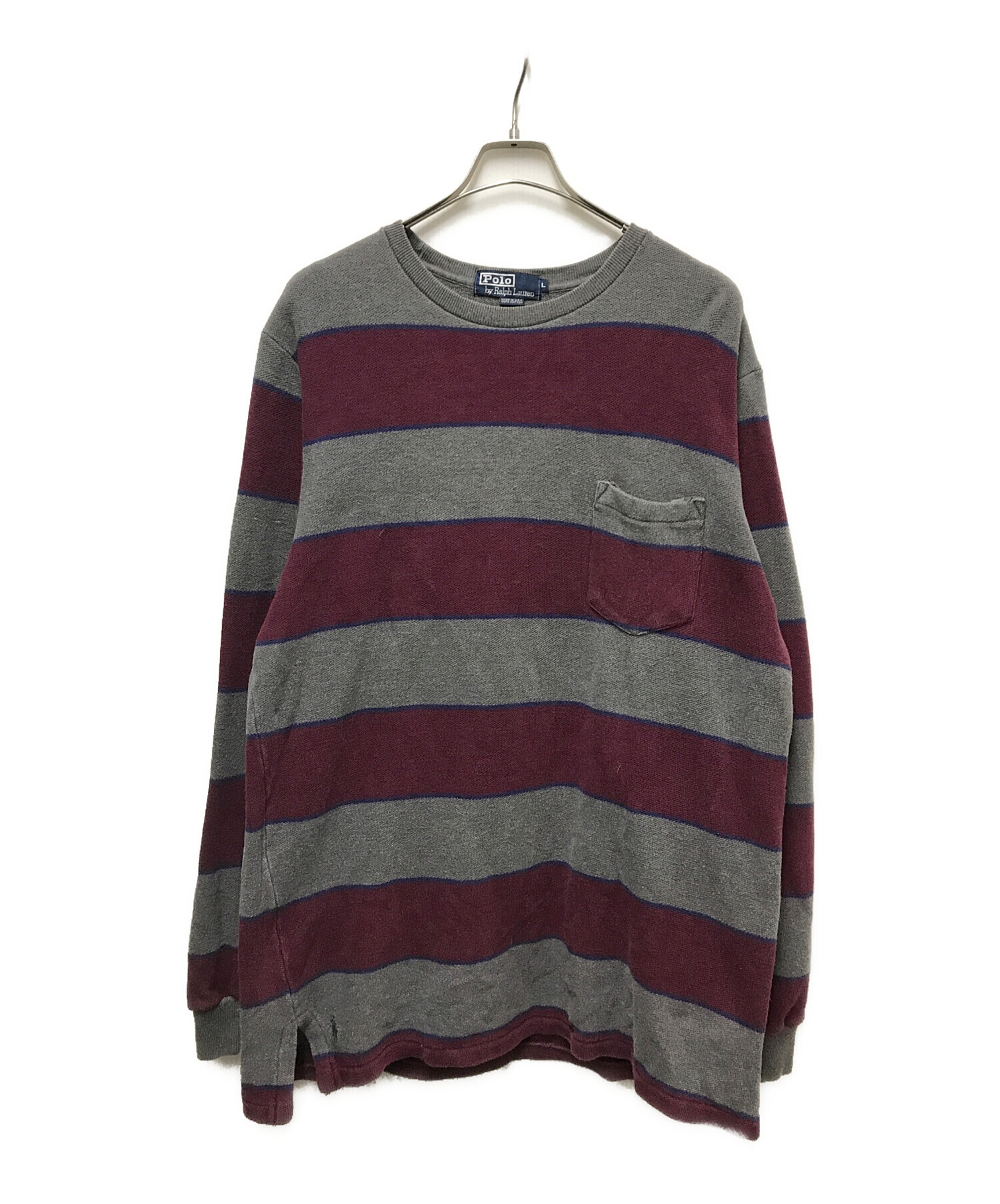 | スタッフコメント | バーガンディ、グレー、ブルーの落ち着いたカラーリングに太目のボーダーのデザイン。 鹿の子生地、裾にスリット、そしてポケットではなく裾近くにあしらわれたポニー刺繍。 ラルフローレンのこだわりのつまった一着です。 |