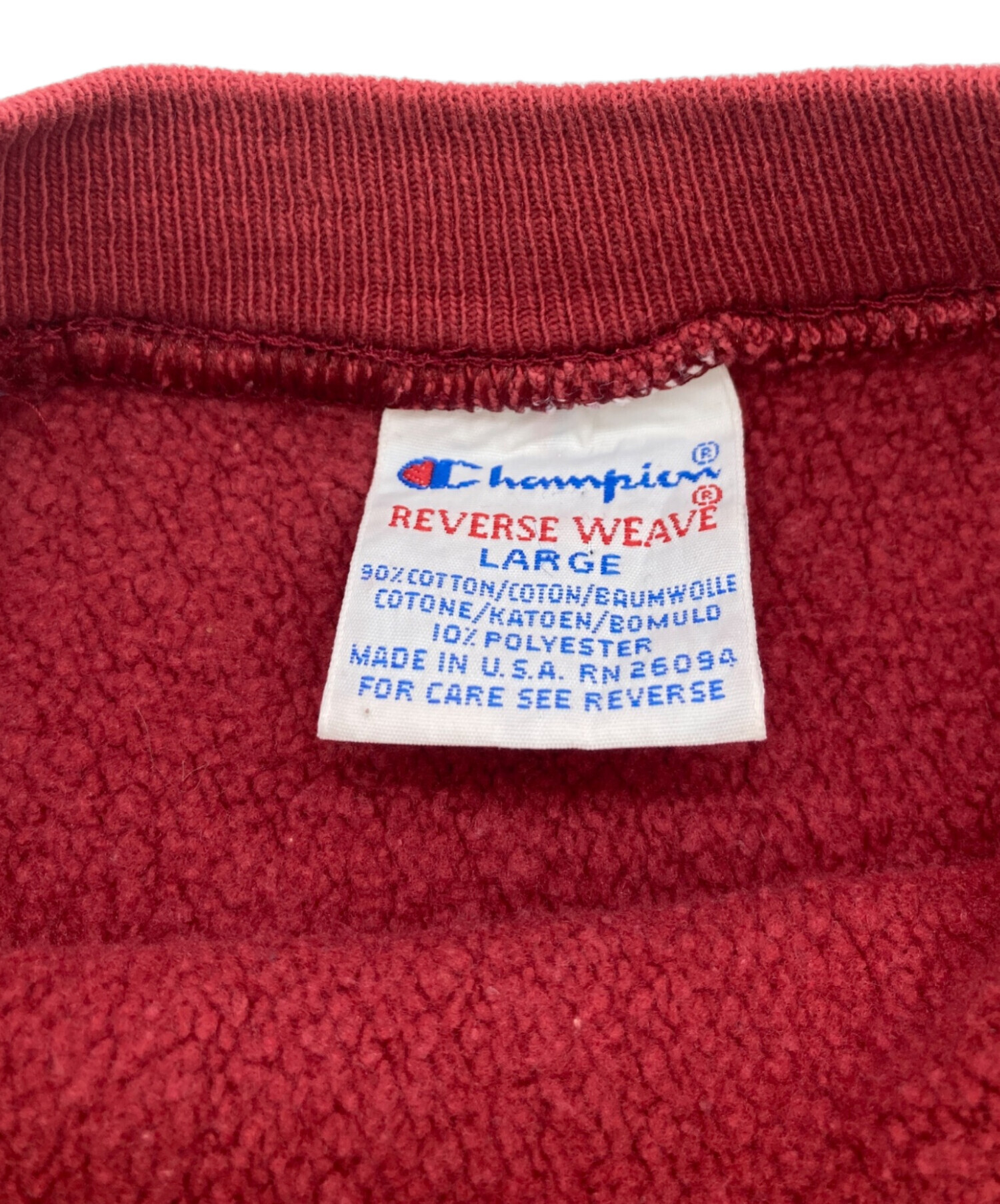 スタッフコメント 90年代刺繍タグの質感とワッペン使いが魅力の一着。リバースウィーブ特有のタフな生地感に、経年の風合いが深みを添えています。