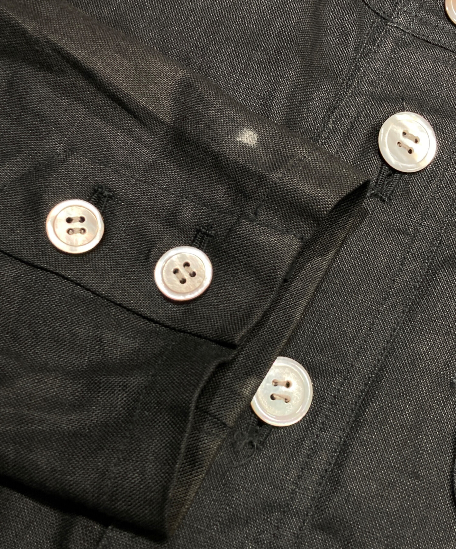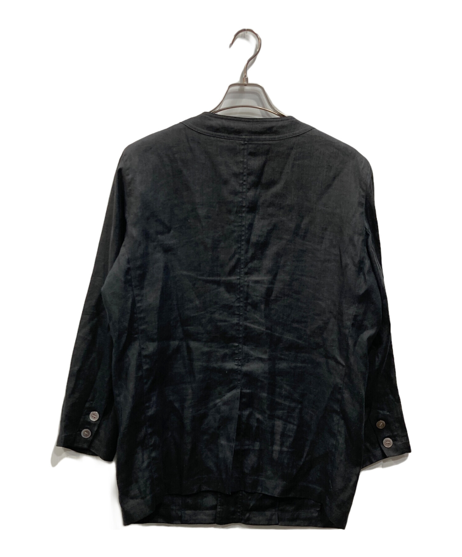 • HAI SPORTING GEAR(ハイスポーツギア)HAI SPORTING GEAR (ハイスポーツギア) リネンノーカラージャケット ブラック サイズ:Mの古着・服飾アイテム 袖口ヨゴレ有