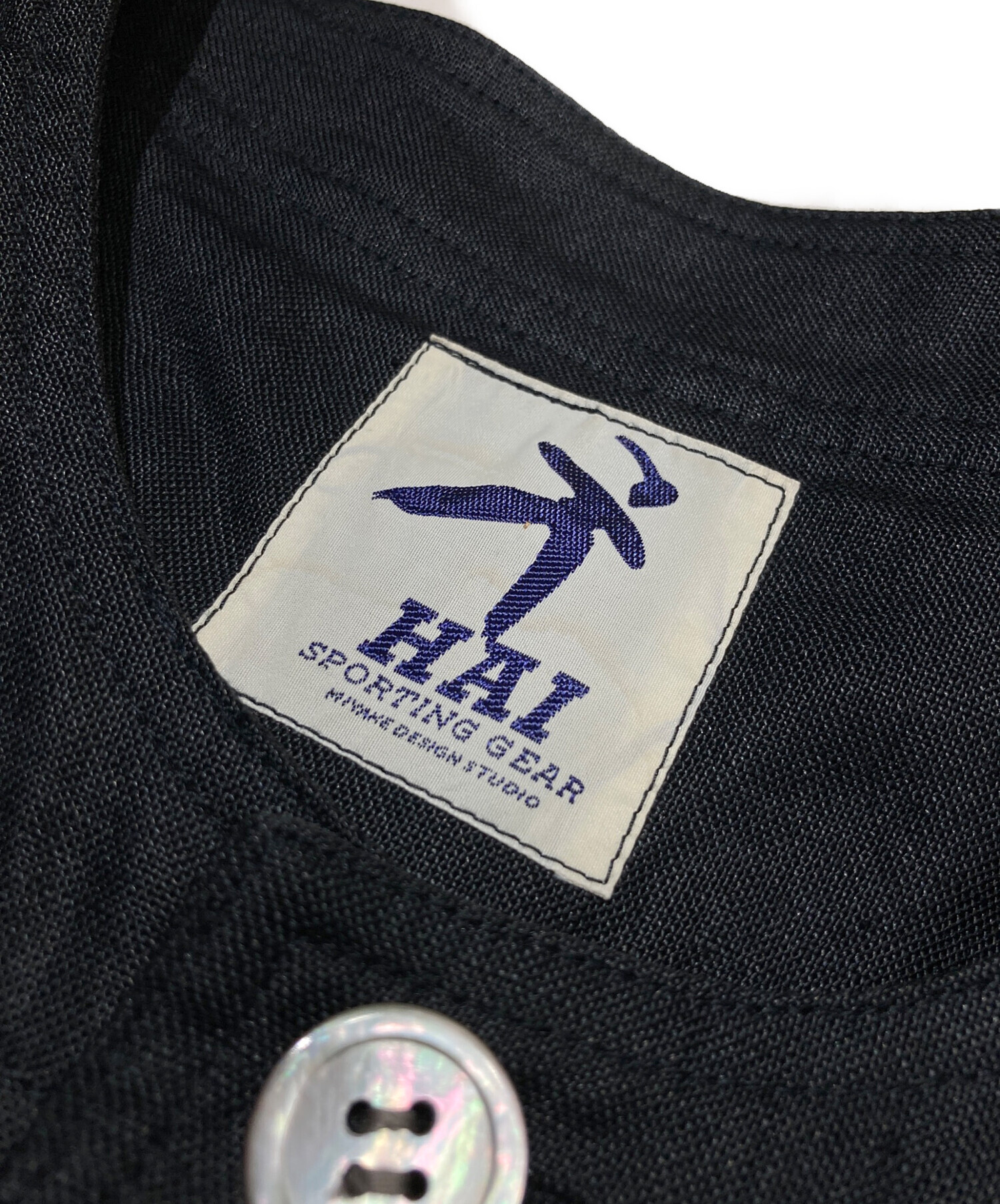 • HAI SPORTING GEAR(ハイスポーツギア)HAI SPORTING GEAR (ハイスポーツギア) リネンノーカラージャケット ブラック サイズ:Mの古着・服飾アイテム タグヨゴレ有