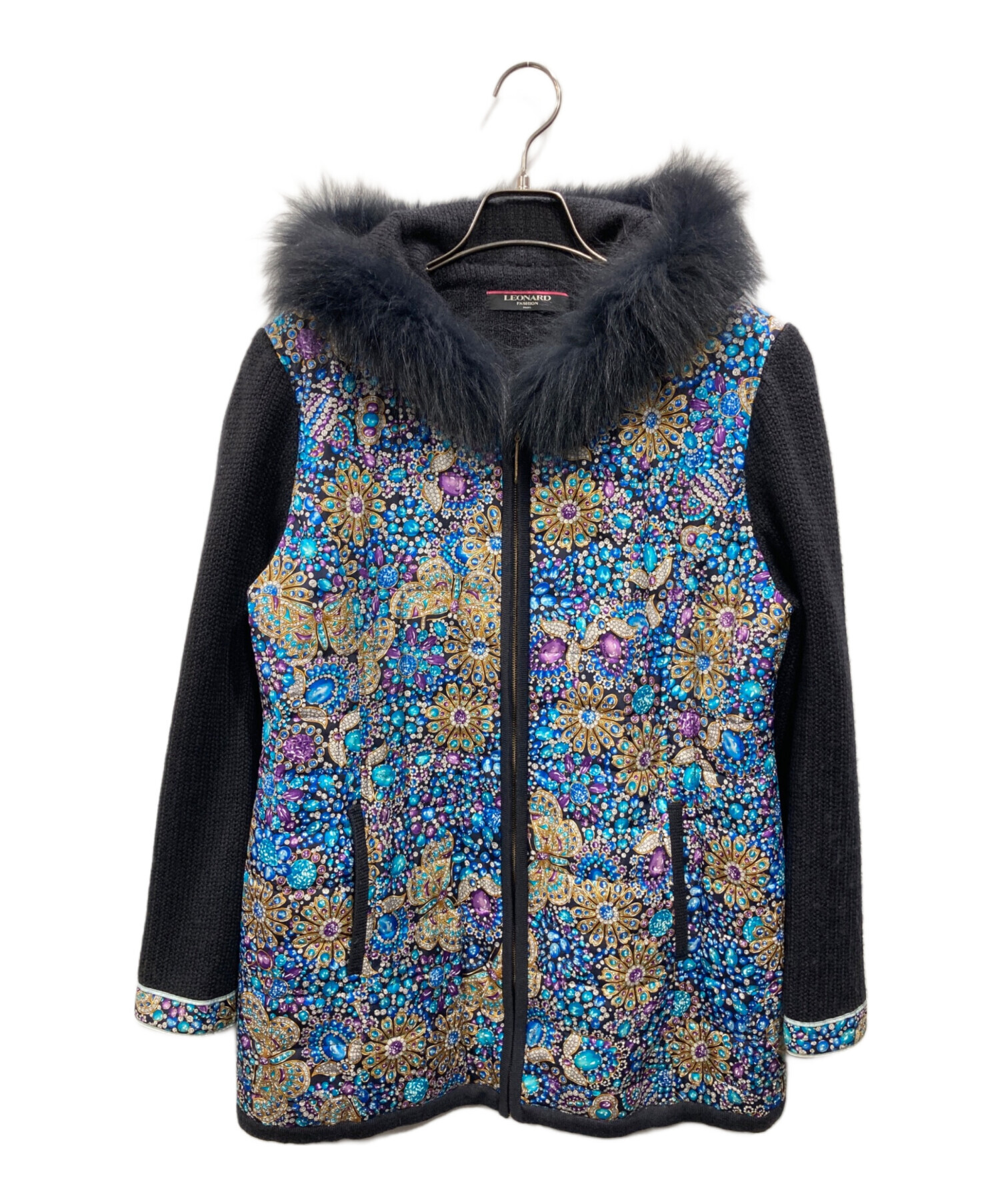 • LEONARD(レオナール)LEONARD (レオナール) 切替ニットジャケット ネイビー サイズ:LLの古着・服飾アイテム