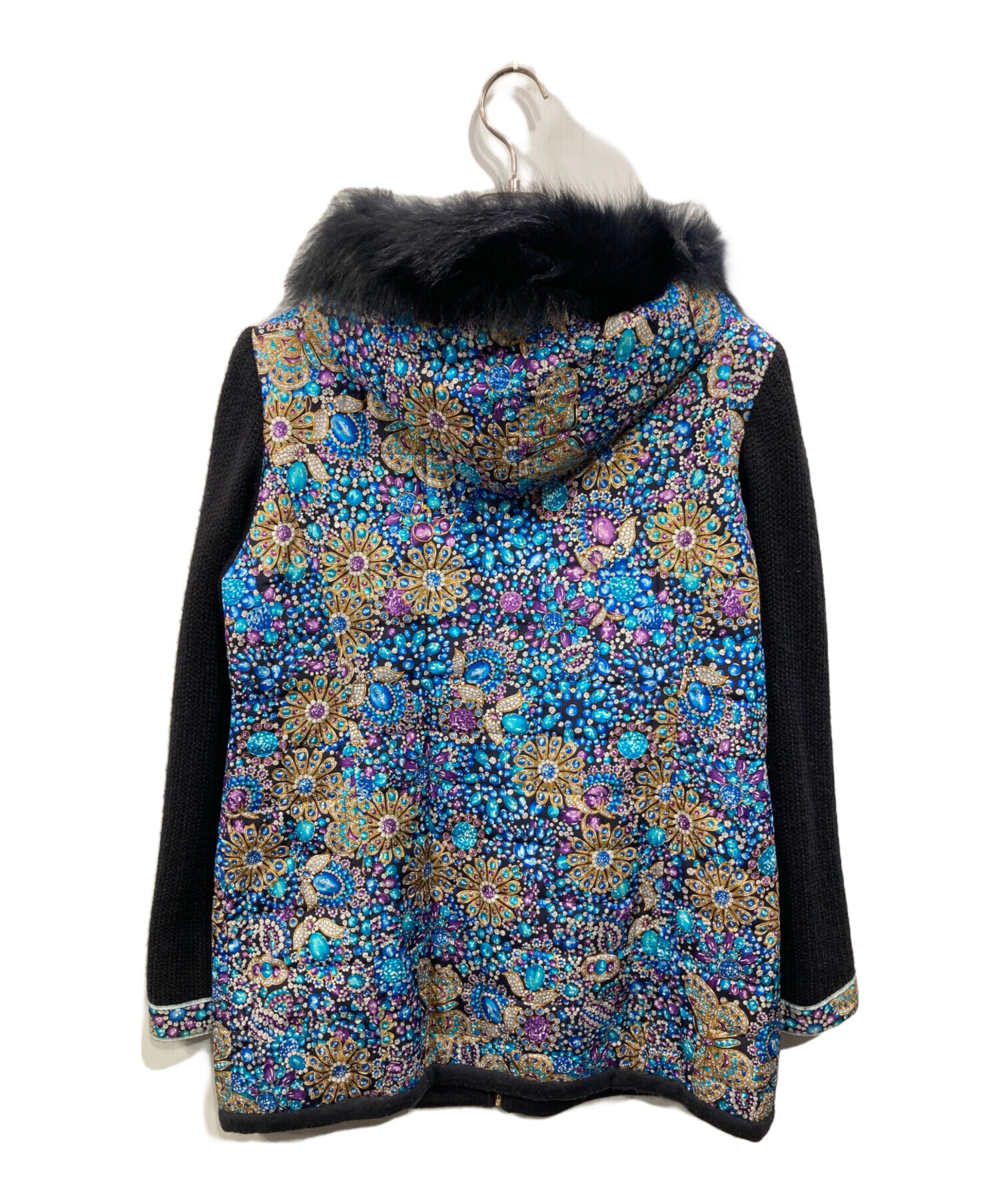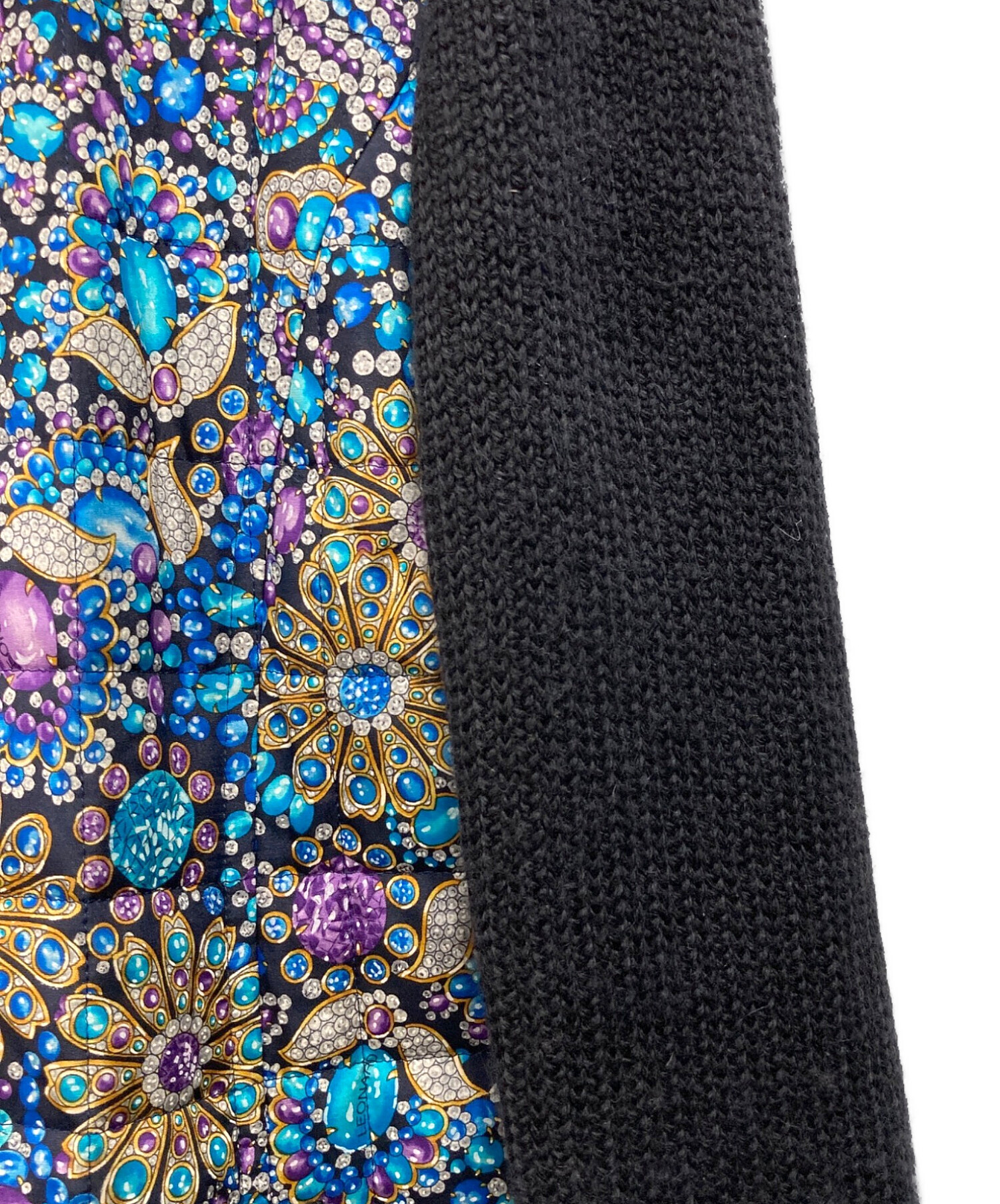 • LEONARD(レオナール)LEONARD (レオナール) 切替ニットジャケット ネイビー サイズ:LLの古着・服飾アイテム 内側毛羽立ち有