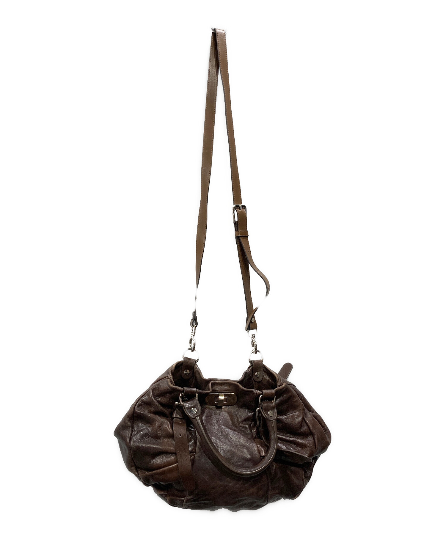 ギャザーレザー2WAYショルダーバッグ