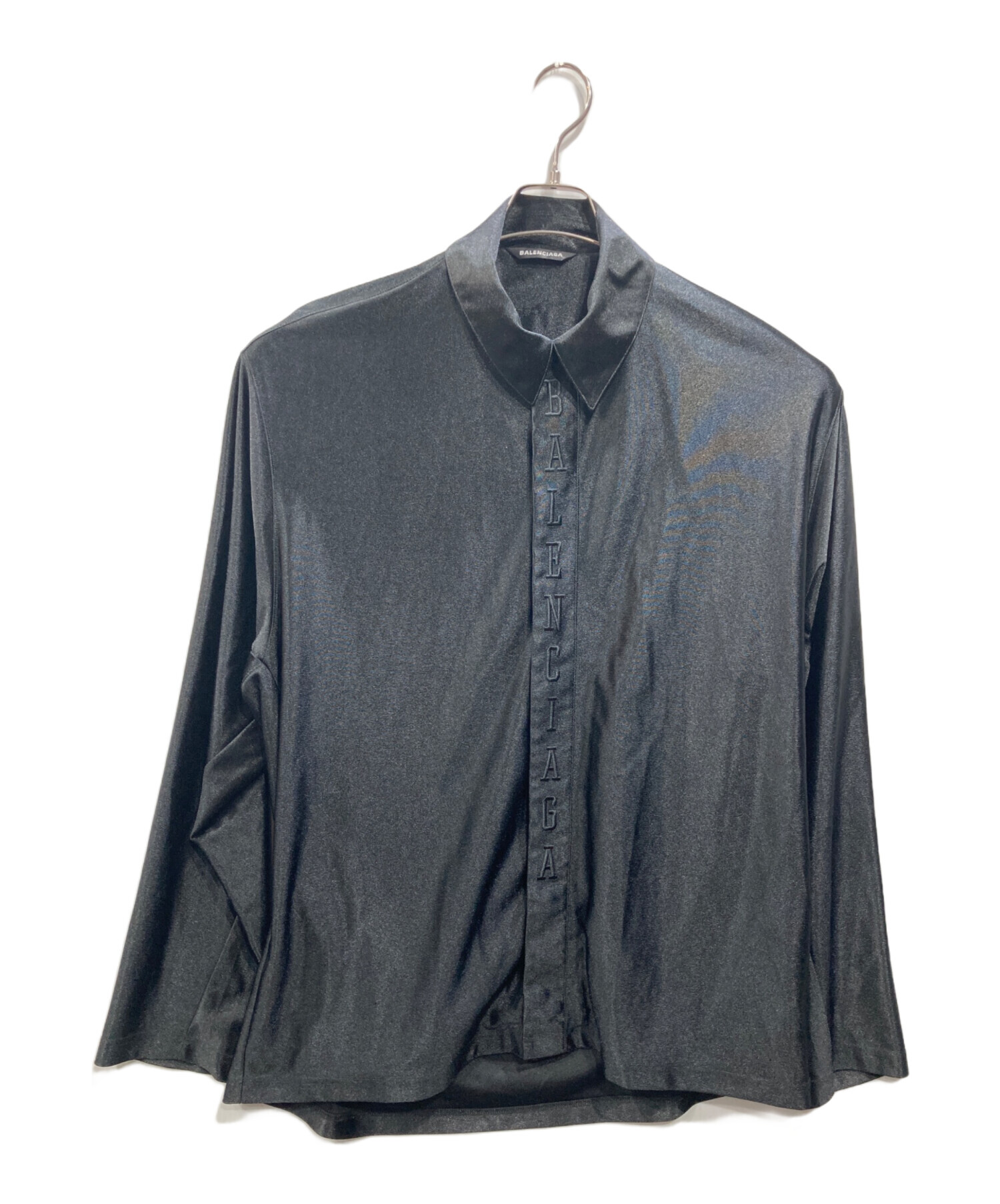 スタッフコメント 表地、刺繍部分ともにポリエステル100%。サテン生地特有の光沢感があり、ポリエステル素材のためシワになりにくく、扱いやすいのが特徴です。胸元などに施されたロゴ刺繍がアクセントになっています。シルエットはバレンシアガらしい、ゆったりとしたオーバーサイズ気味の作りです。