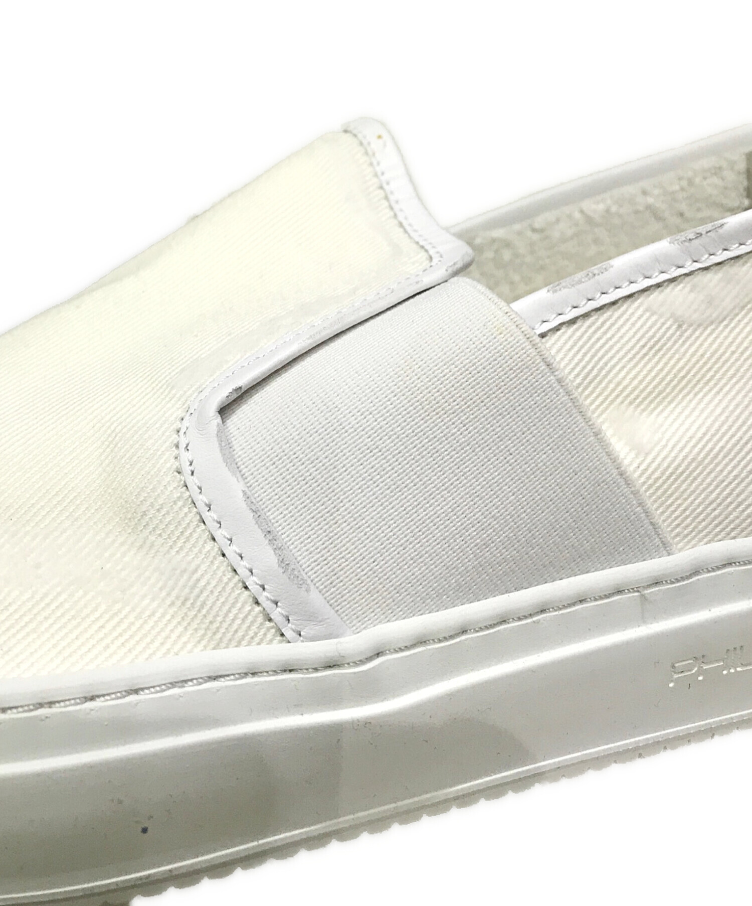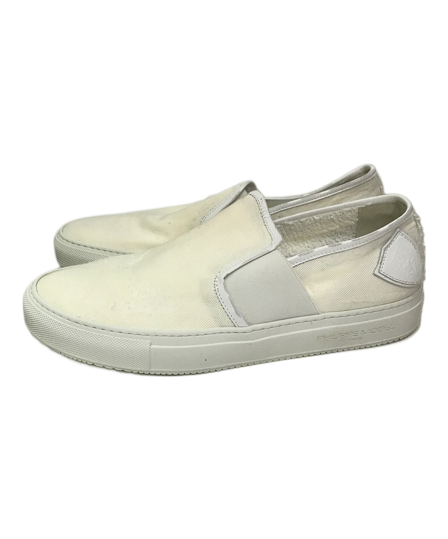 • PHILIPPE MODEL(フィリップ モデル)PHILIPPE MODEL (フィリップ モデル) ダメージ加工スリッポン ホワイト サイズ:42の古着・服飾アイテム 薄ヨゴレ有