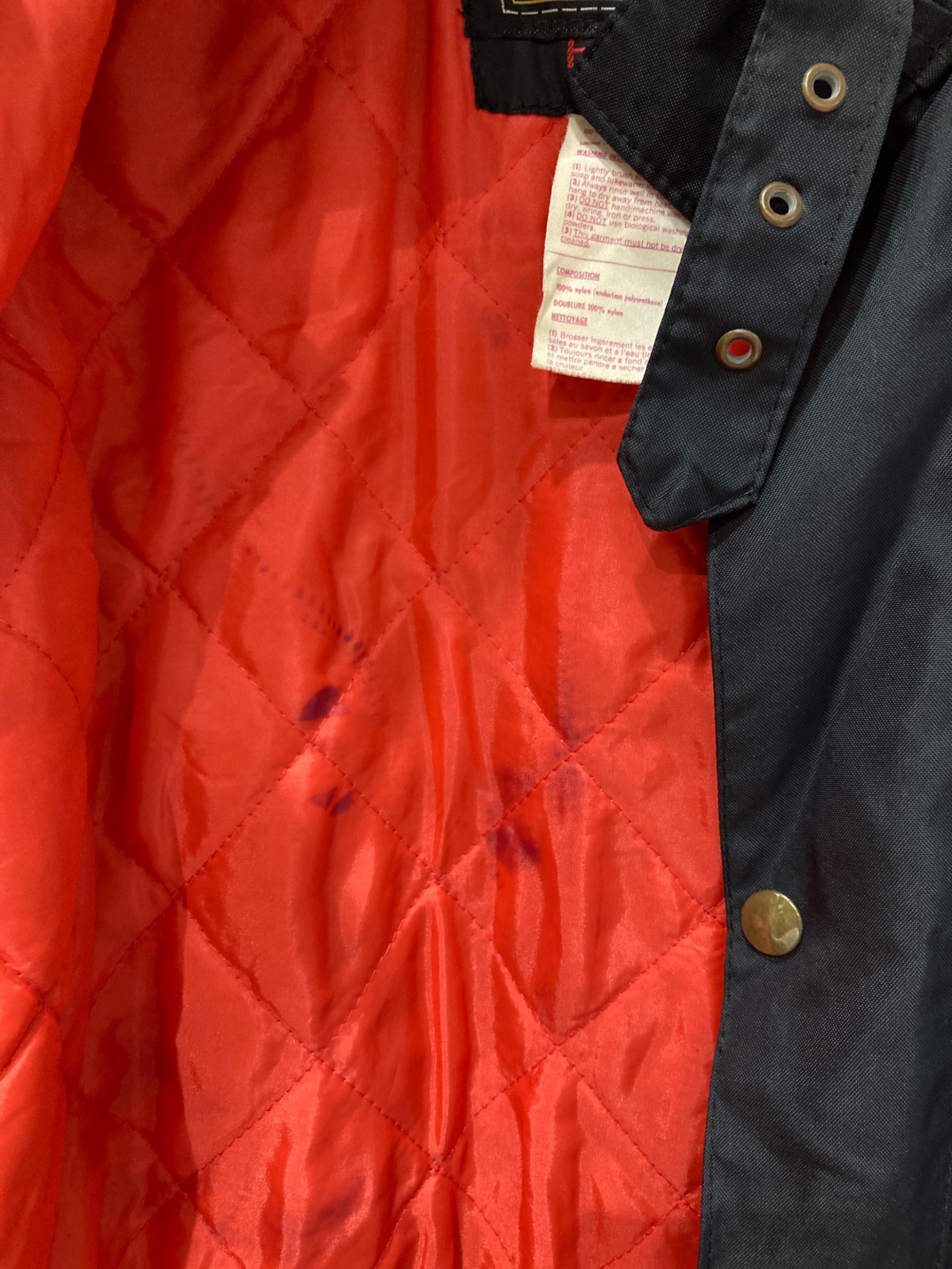 目立つシミや汚れ、におい等がある場合は商品画像や説明文にて極力表記させていただいておりますが、中古品という商品の特性上、全ての瑕疵や不備、洋服直し箇所を撮影・記載をすることは難しくなっております。また、ほとんどのアイテムは店頭と併売しておりますため、出品掲載時からコンディションが変動している場合もございます。あらかじめご了承くださいませ。
