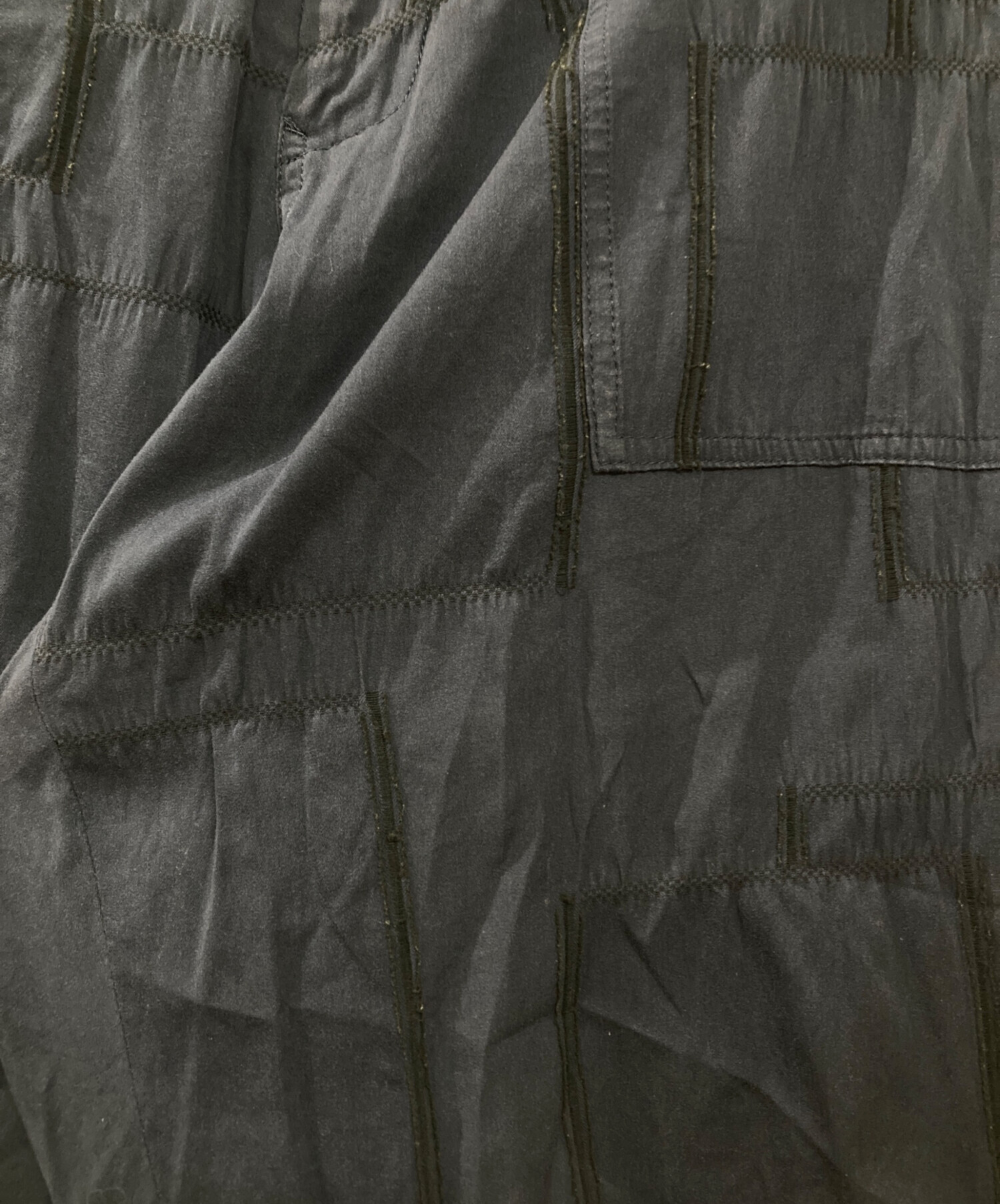 • Y's(ワイズ)Y's (ワイズ) パッチワークステッチコットンテーパードパンツ ネイビー サイズ:XSの古着・服飾アイテム アタリ、薄ヨゴレ有