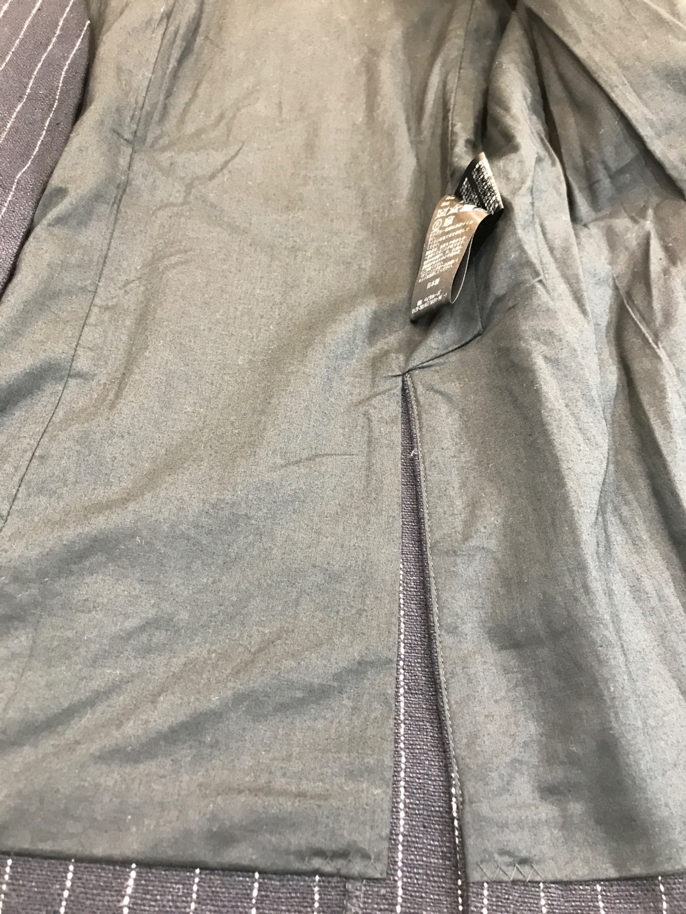 目立つシミや汚れ、におい等がある場合は商品画像や説明文にて極力表記させていただいておりますが、中古品という商品の特性上、全ての瑕疵や不備、洋服直し箇所を撮影・記載をすることは難しくなっております。また、ほとんどのアイテムは店頭と併売しておりますため、出品掲載時からコンディションが変動している場合もございます。あらかじめご了承くださいませ。
