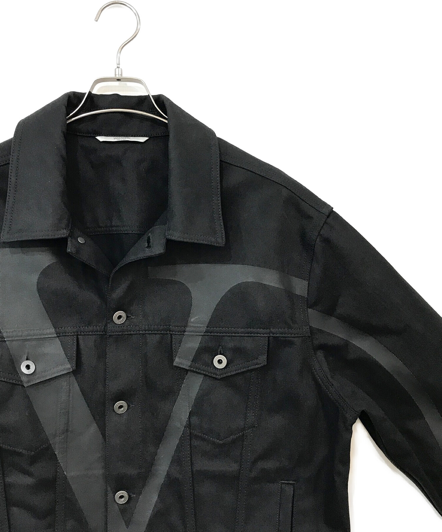 • VALENTINO(ヴァレンティノ)VALENTINO (ヴァレンティノ) Vロゴプリントデニムジャケット ブラック サイズ:48の古着・服飾アイテム 襟ヨゴレ