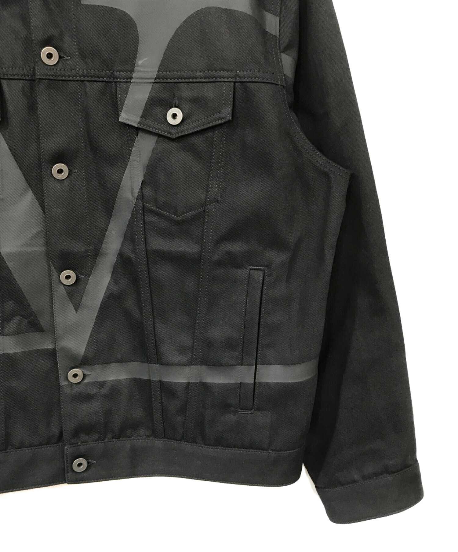 • VALENTINO(ヴァレンティノ)VALENTINO (ヴァレンティノ) Vロゴプリントデニムジャケット ブラック サイズ:48の古着・服飾アイテム 背面ヨゴレ