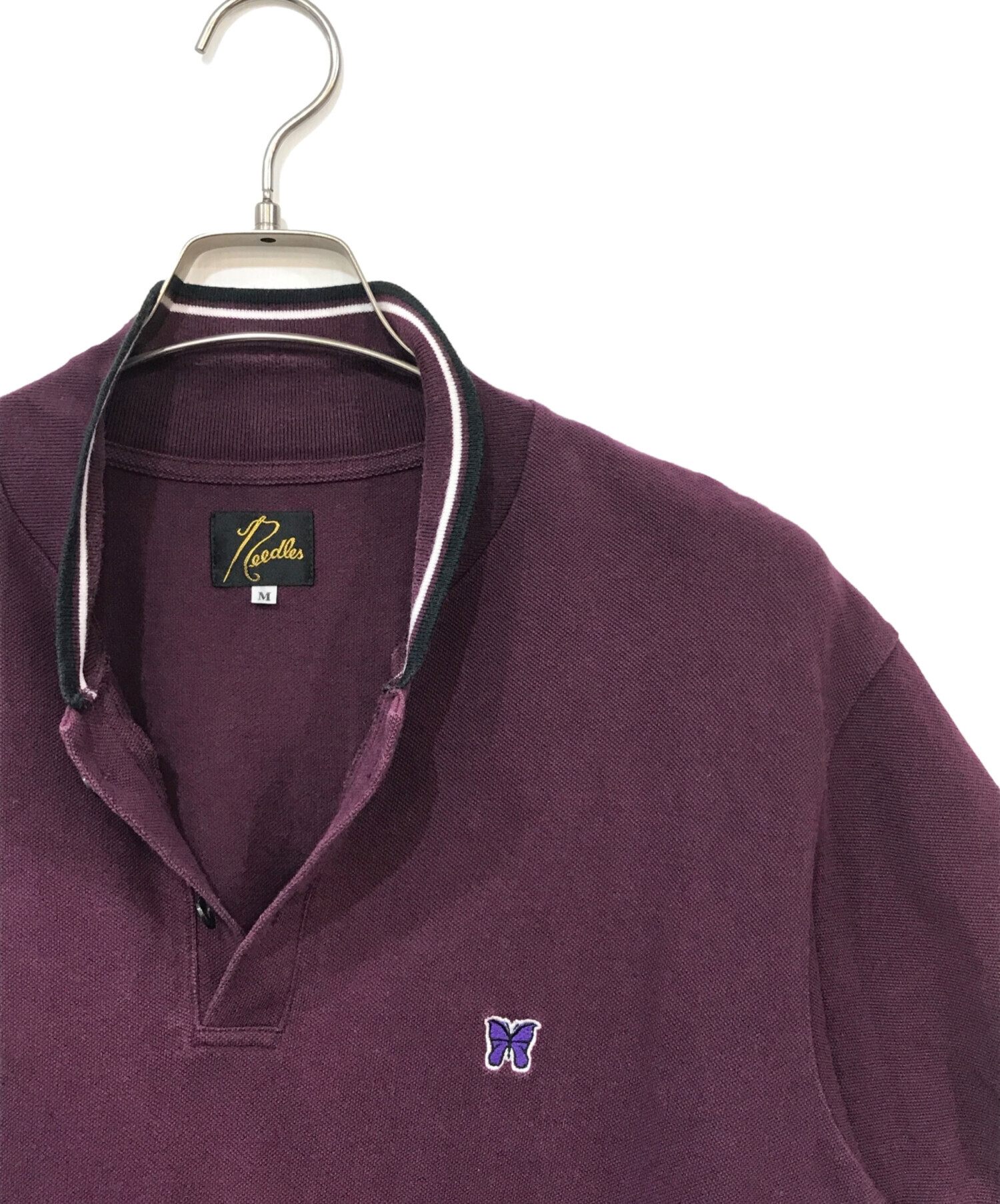 • Needles(ニードルズ)Needles (ニードルズ) Shawl Collar S/S Polo パープル サイズ:Mの古着・服飾アイテム 前面ヨゴレ