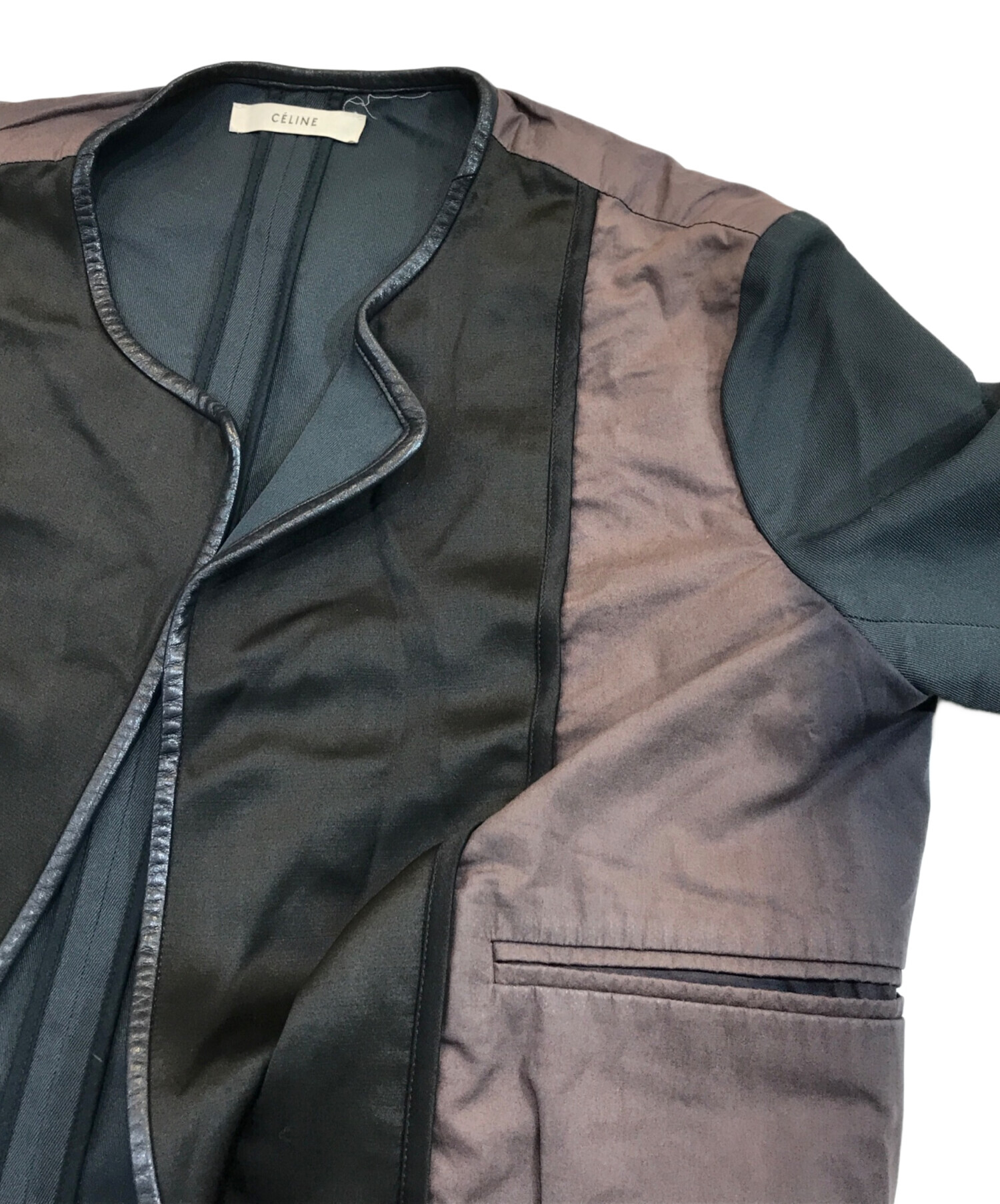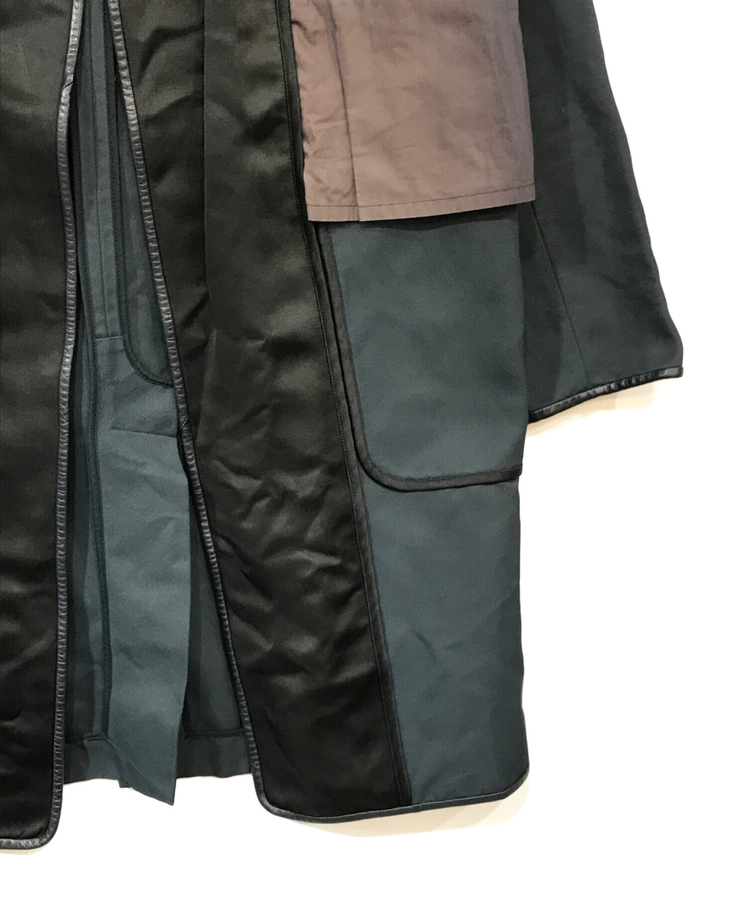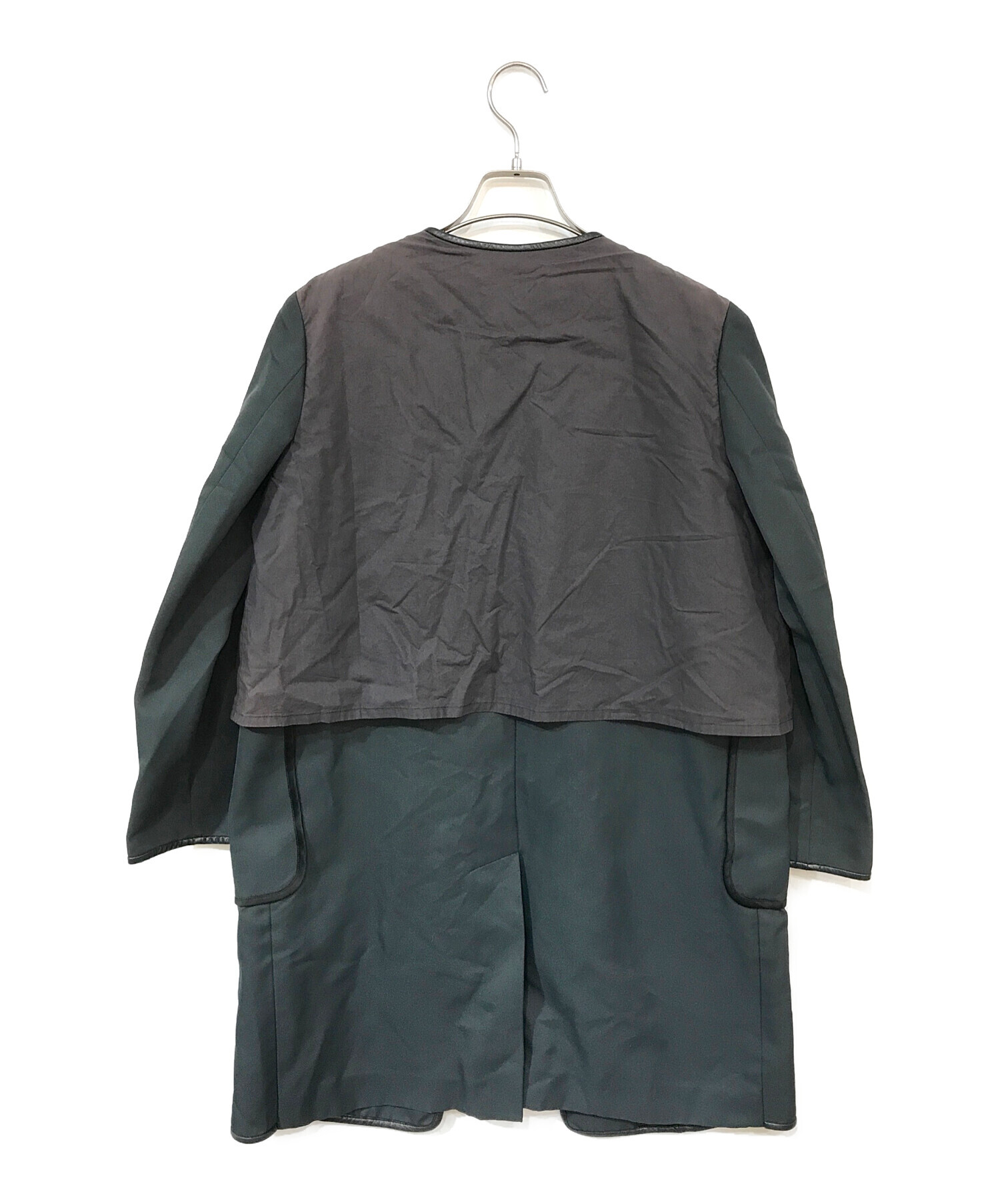 | 素材 | (本体)ポリエステル100% (前身頃)絹74%・毛26% (別布)綿100% (皮革部分)羊革 (裏地)綿100% |
