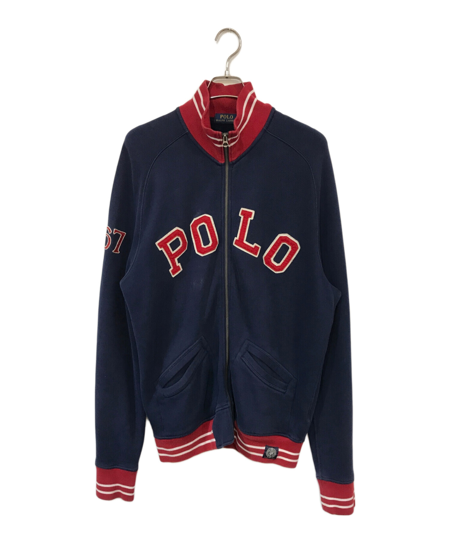 • POLO RALPH LAUREN(ポロ・ラルフローレン)POLO RALPH LAUREN (ポロ・ラルフローレン) スウェット地ジャケット ネイビー サイズ:Lの古着・服飾アイテム ワッペン毛羽立ち