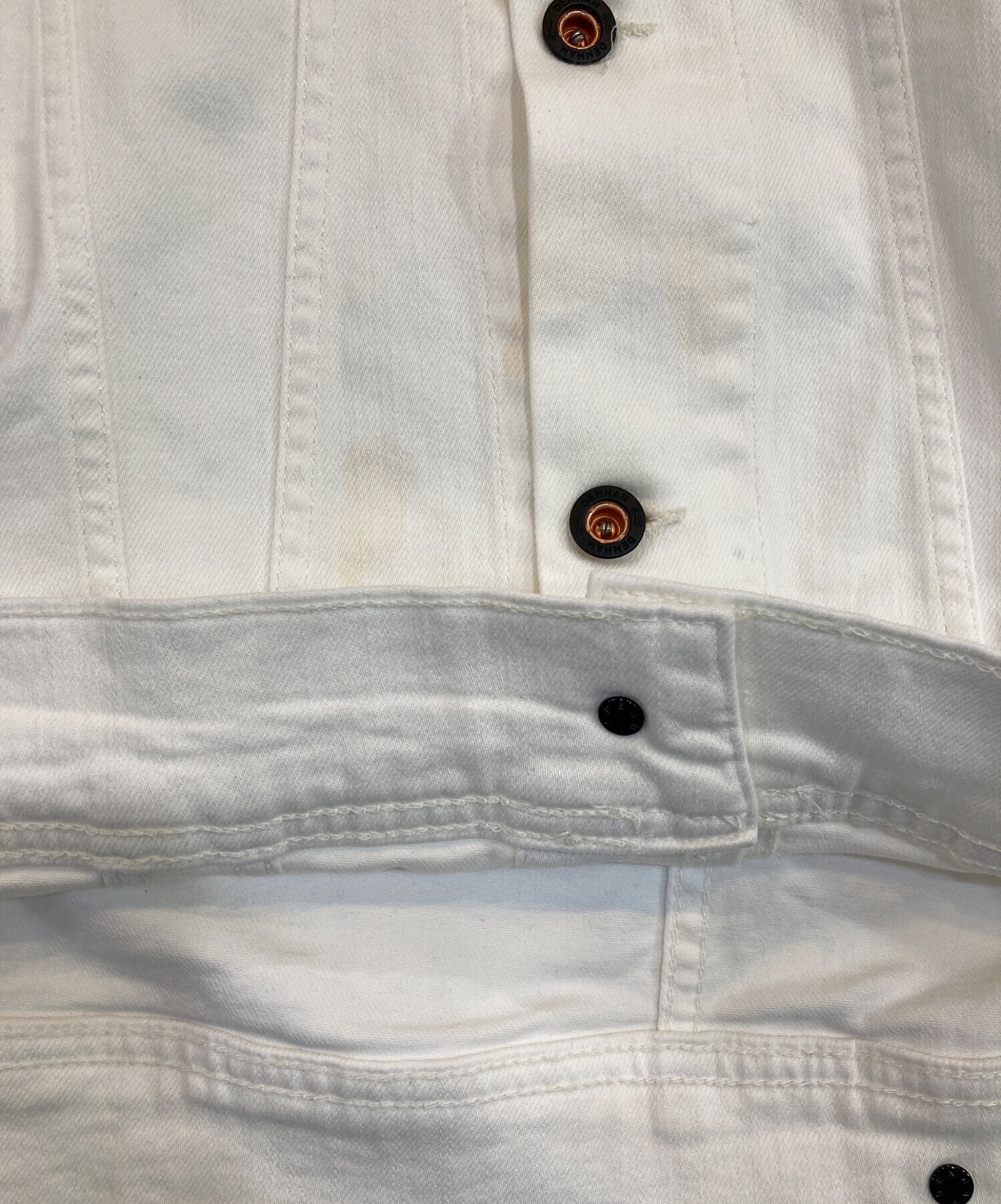目立つシミや汚れ、におい等がある場合は商品画像や説明文にて極力表記させていただいておりますが、中古品という商品の特性上、全ての瑕疵や不備、洋服直し箇所を撮影・記載をすることは難しくなっております。また、ほとんどのアイテムは店頭と併売しておりますため、出品掲載時からコンディションが変動している場合もございます。あらかじめご了承くださいませ。
