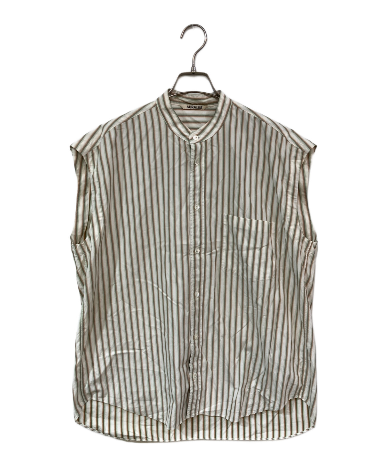 • AURALEE(オーラリー)AURALEE (オーラリー) WASHED FINX TWILL STRIPE SLEEVELESS SHIRTS/ウォッシュドフィンクスツイルストライプスリーブレスシャツ マルチカラー サイズ:SIZE 1の古着・服飾アイテム 胸ポケット小ヨゴレ有