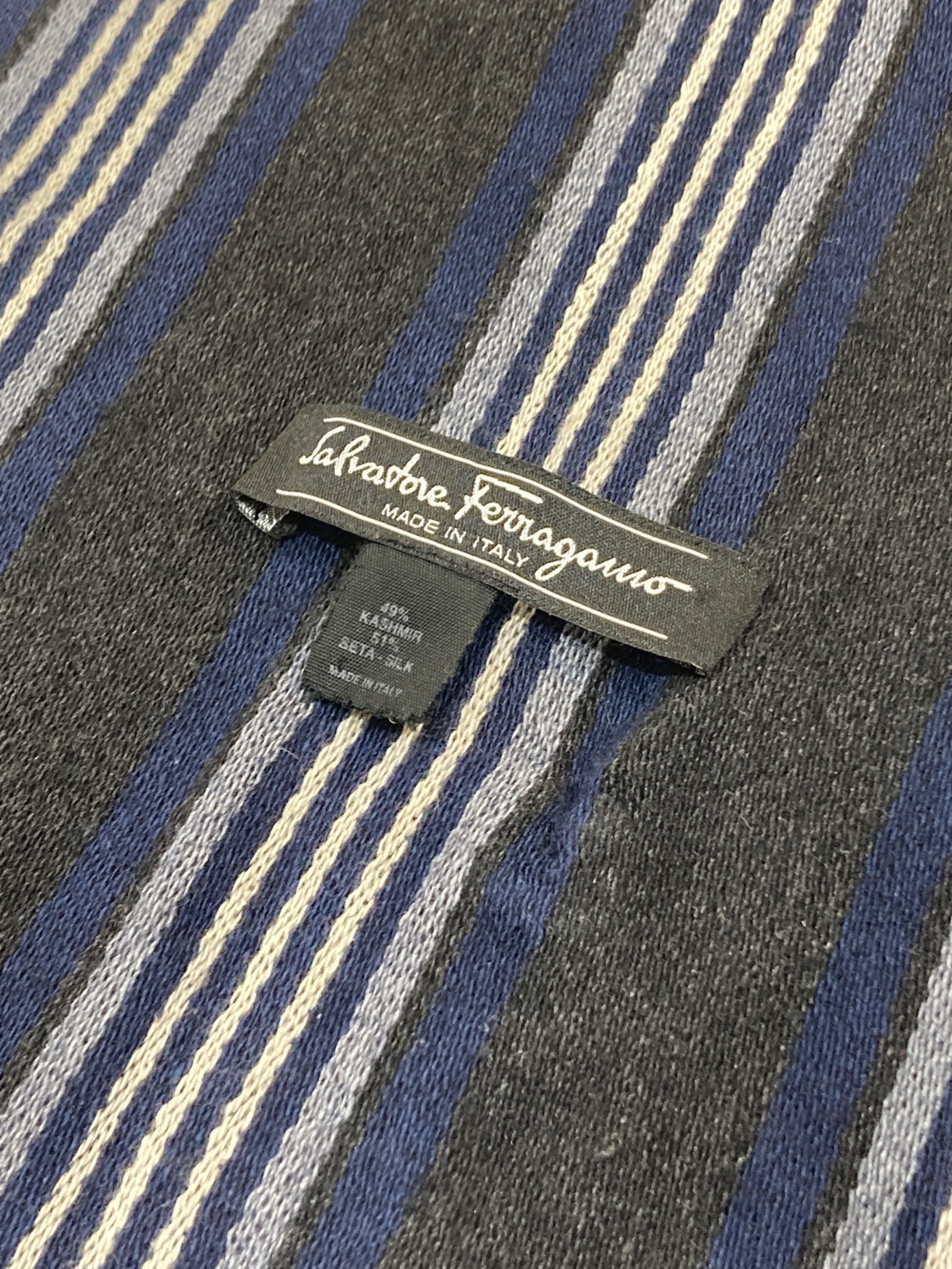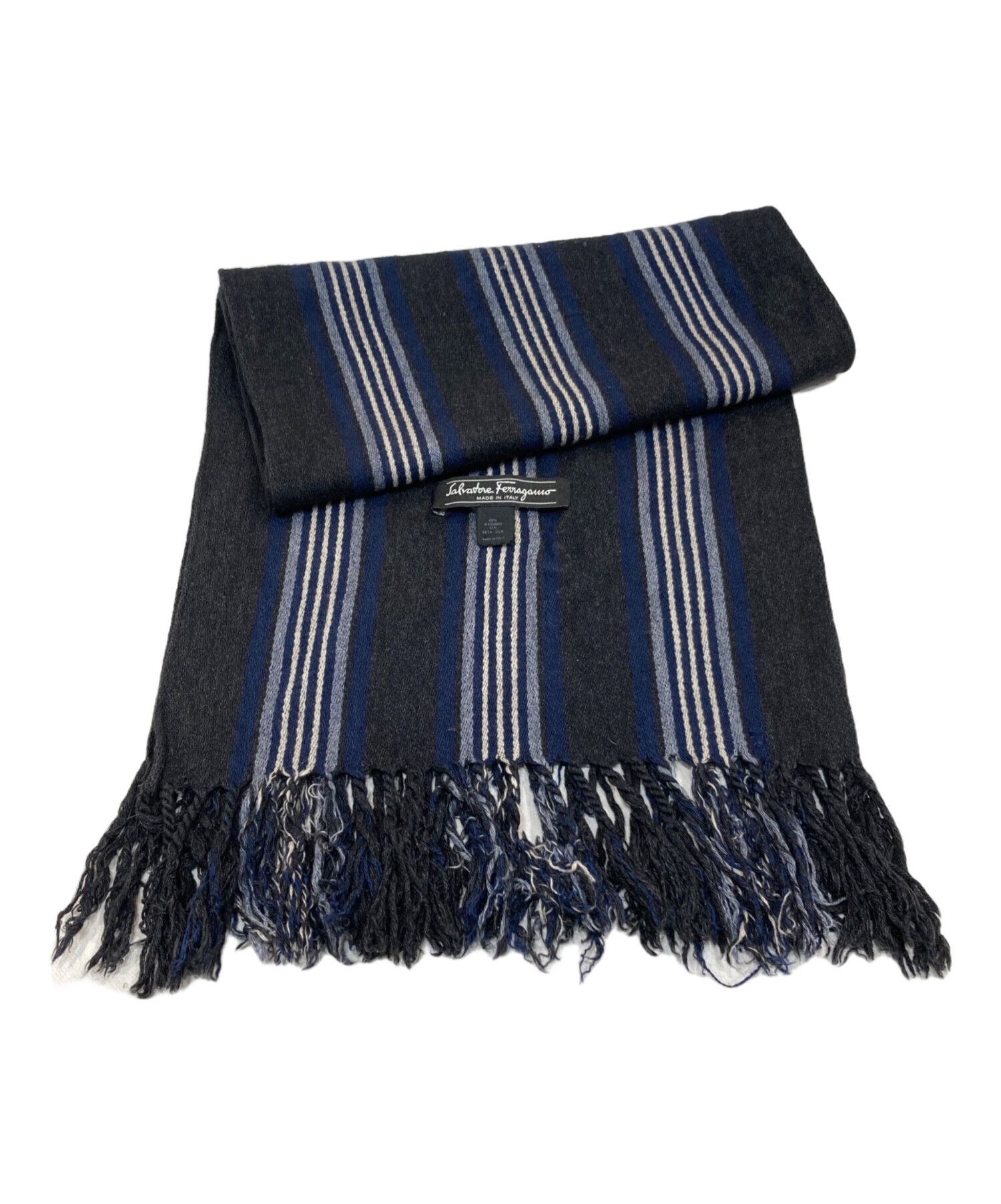 • Salvatore Ferragamo(サルヴァトーレ フェラガモ)Salvatore Ferragamo (サルヴァトーレ フェラガモ) カシミヤシルクマフラー グレーの古着・服飾アイテム 生地ダメージ