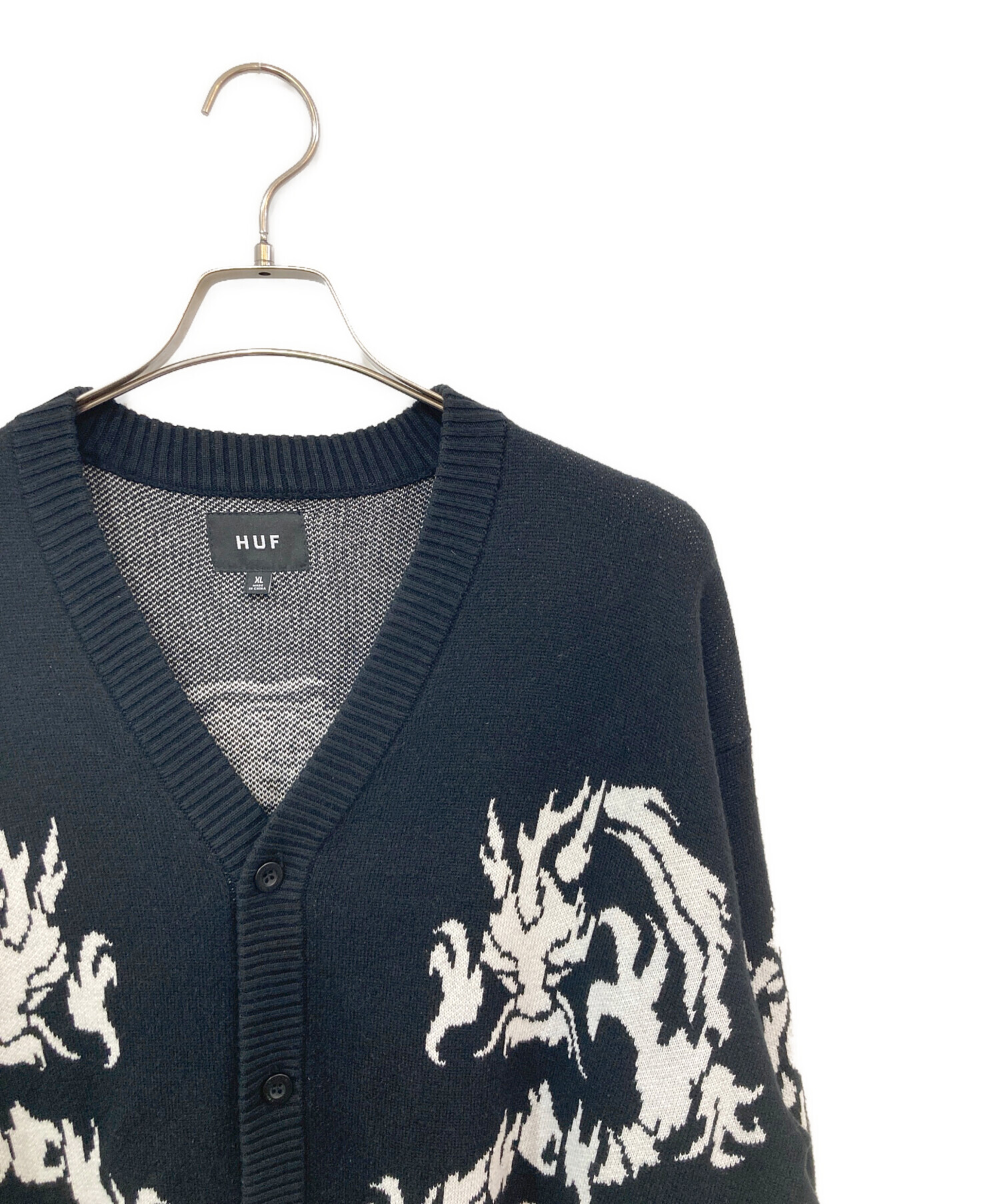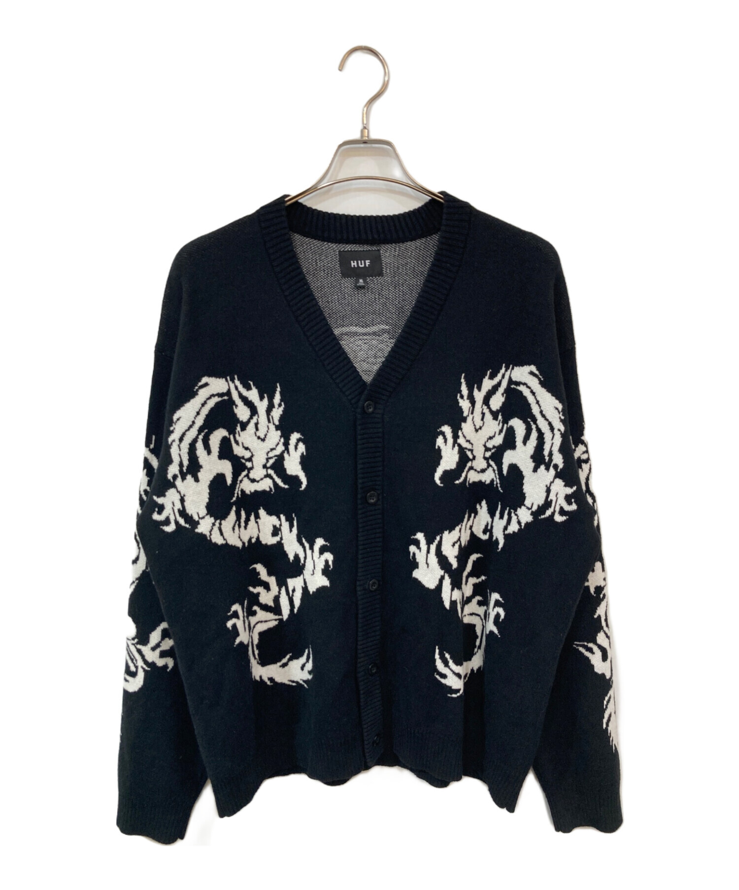 • HUF(ハフ)HUF (ハフ) Twin Dragon Cardigan/ツインドラゴンカーディガン ブラック サイズ:SIZE XLの古着・服飾アイテム 両袖内側毛玉有