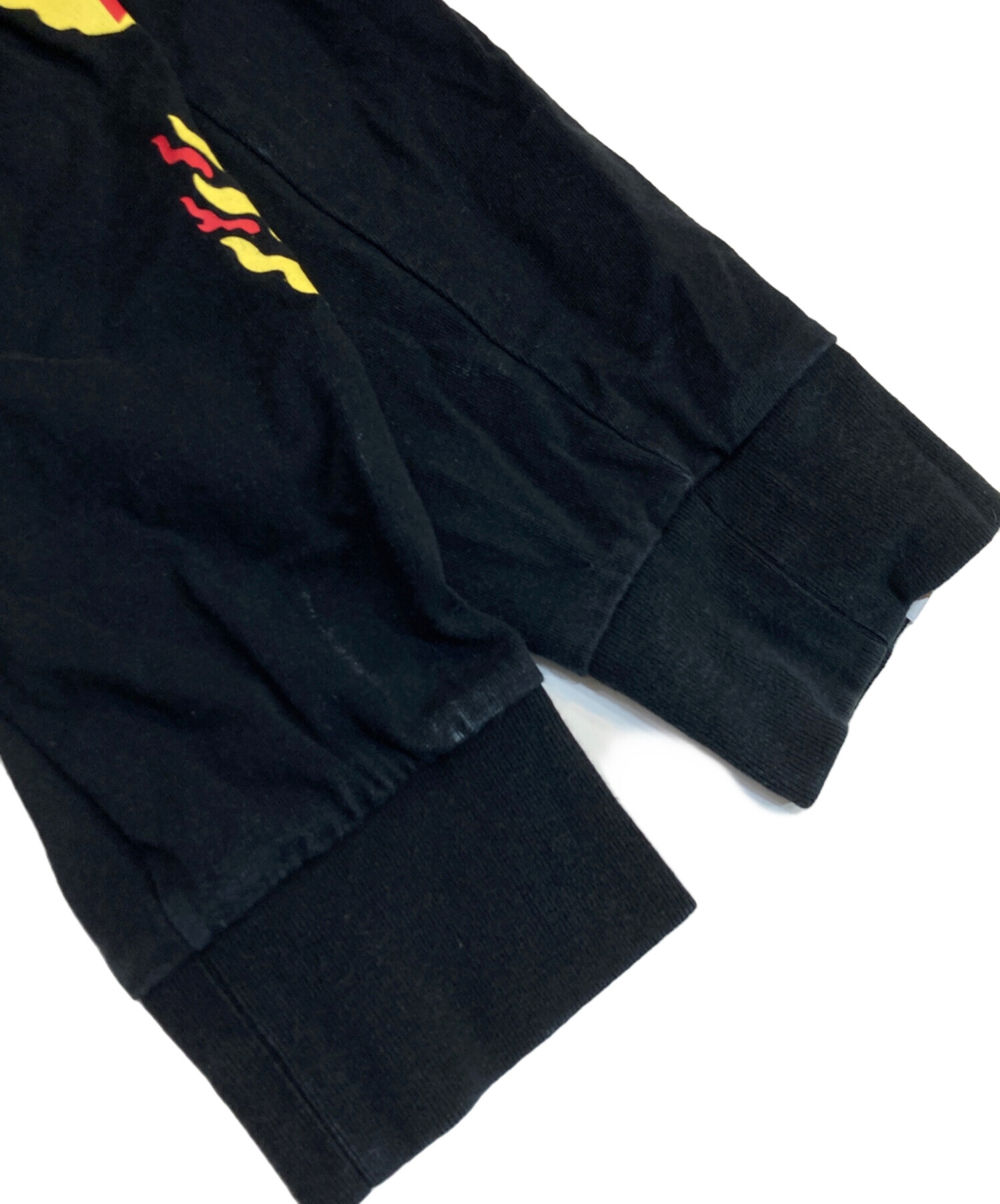 • A BATHING APE(ア ベイシング エイプ)A BATHING APE (ア ベイシング エイプ) フレイム ロングスリーブカットソー ブラック サイズ:SIZE XLの古着・服飾アイテム 両袖アタリ・ヨゴレ有