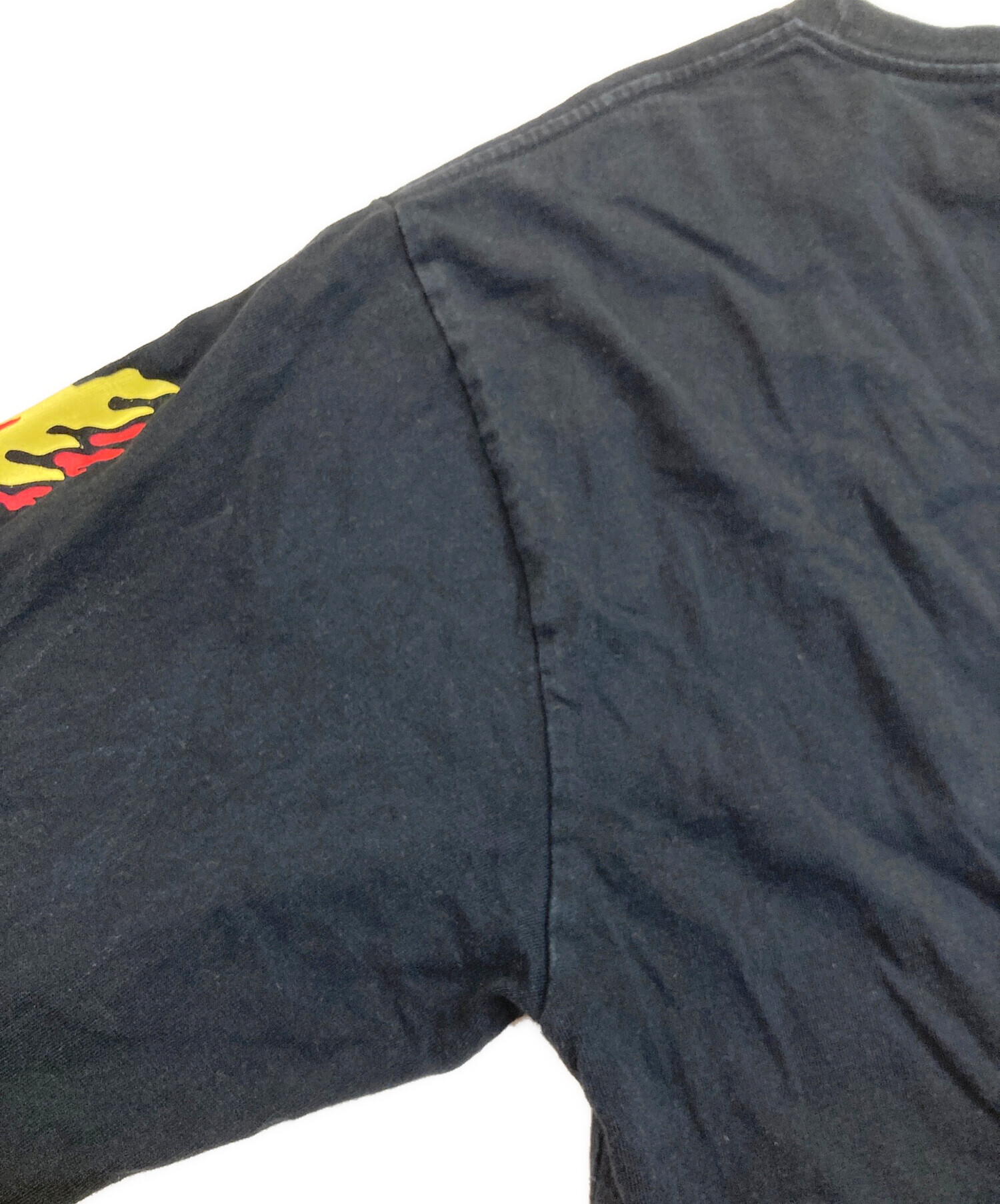 • A BATHING APE(ア ベイシング エイプ)A BATHING APE (ア ベイシング エイプ) フレイム ロングスリーブカットソー ブラック サイズ:SIZE XLの古着・服飾アイテム 背面首周りアタリ有
