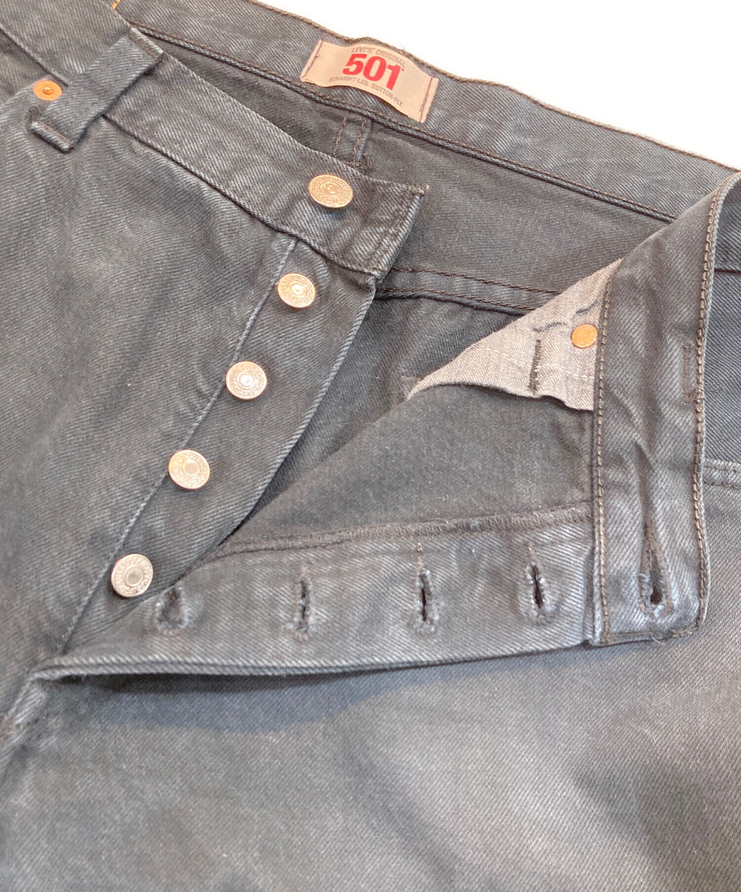 • LEVI'S(リーバイス)LEVI'S (リーバイス) 501 ブラックデニムパンツ ブラック サイズ:SIZE 91cm (W36)の古着・服飾アイテム 背面股部分穴有