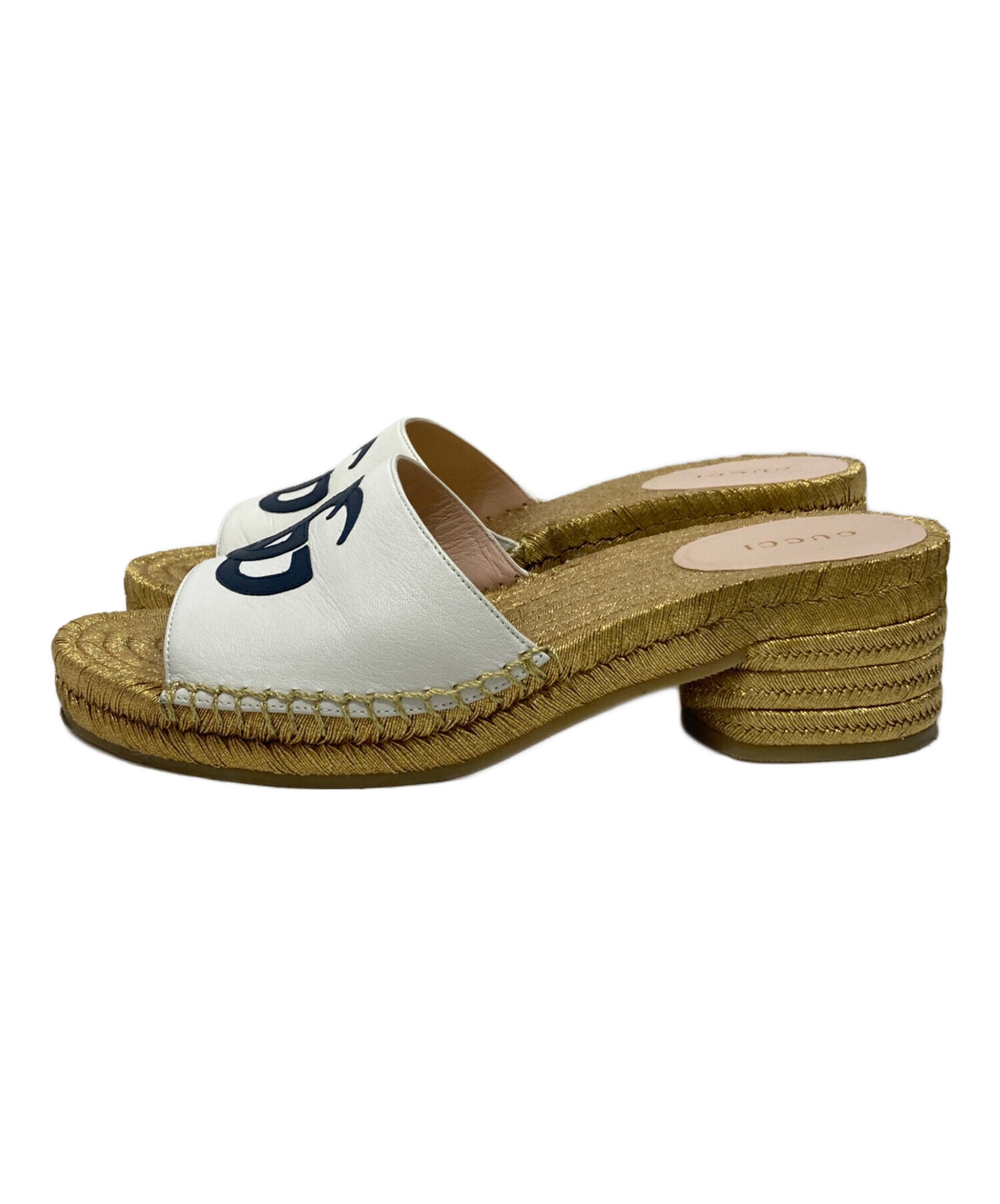 | アイテム名 | White lether GG Espadrille Block Heel Slide Sandals/ホワイト レザー GG エスパドリーユ ブロック ヒール スライド サンダル |