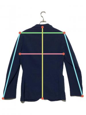 当サイトでは商品の表記サイズの他に、出品商品を採寸しサイズを記載しております。また、実際のアイテム画像を使用した計測とイラストを使用した計測の2パターンがございます。