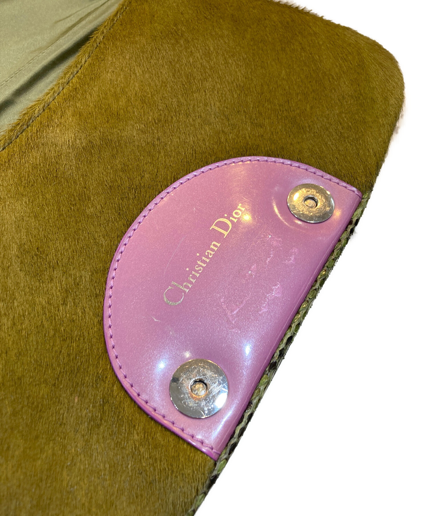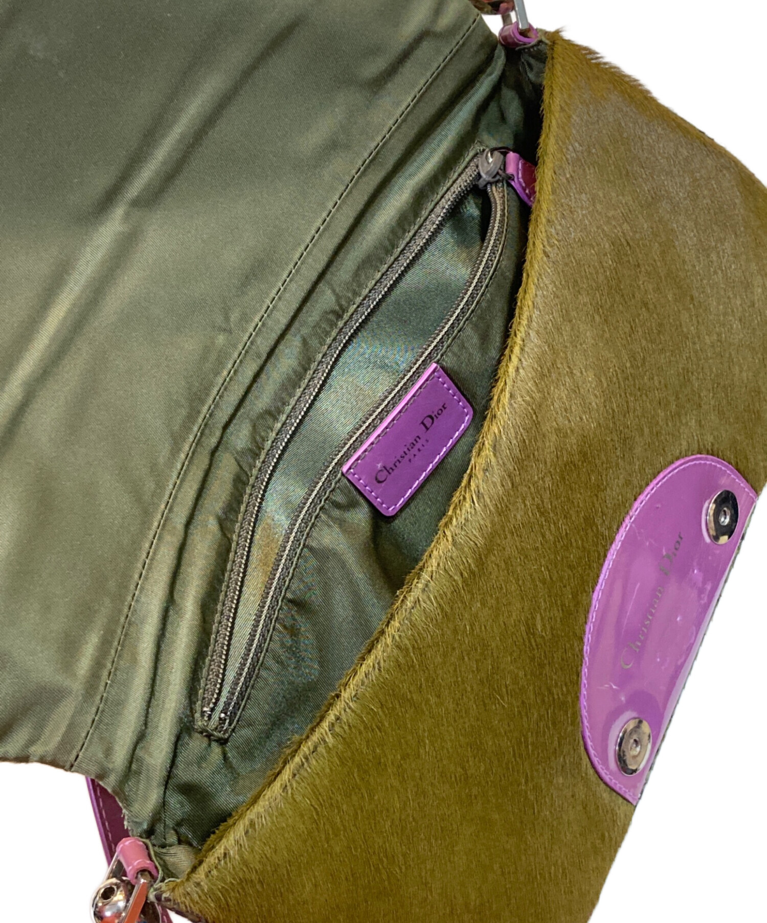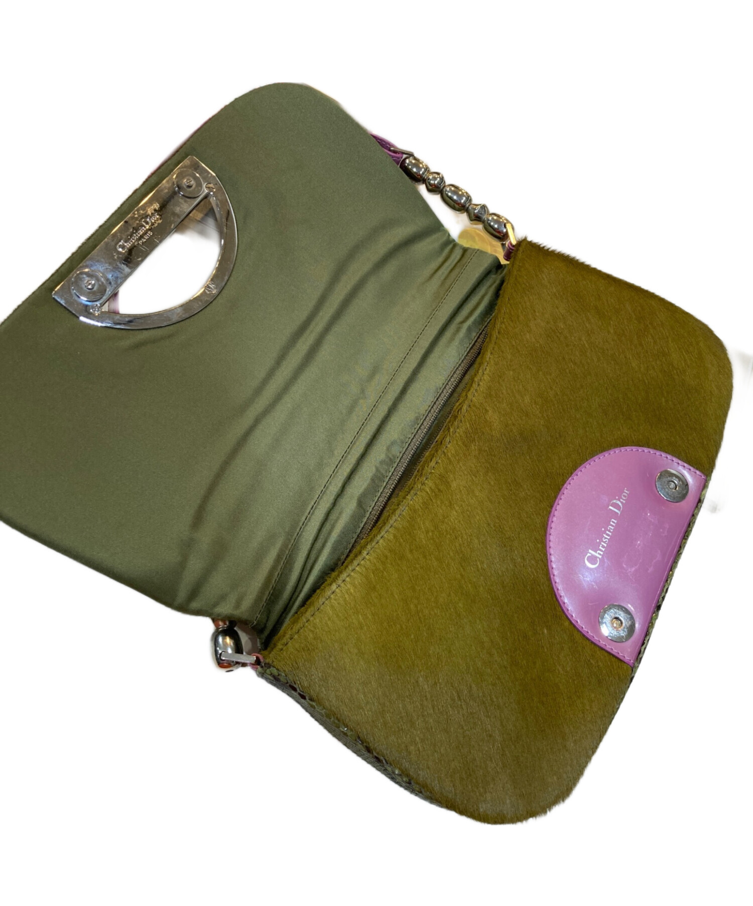 • Christian Dior(クリスチャン ディオール)Christian Dior (クリスチャン ディオール) マリスパール ワンショルダーバッグ グリーン×ピンクの古着・服飾アイテム 内部小ヨゴレ有
