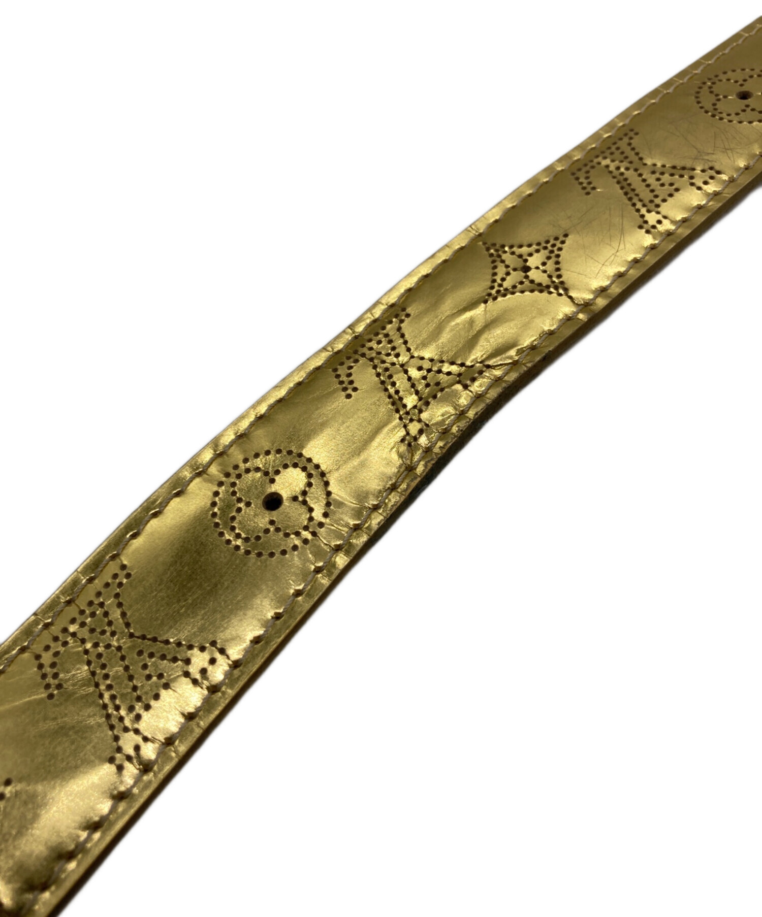 • LOUIS VUITTON(ルイ ヴィトン)LOUIS VUITTON (ルイ ヴィトン) サンチュール ペルフォ レザーオール モノグラムミロワール ベルト ゴールドカラー サイズ:80/32の古着・服飾アイテム シミ有