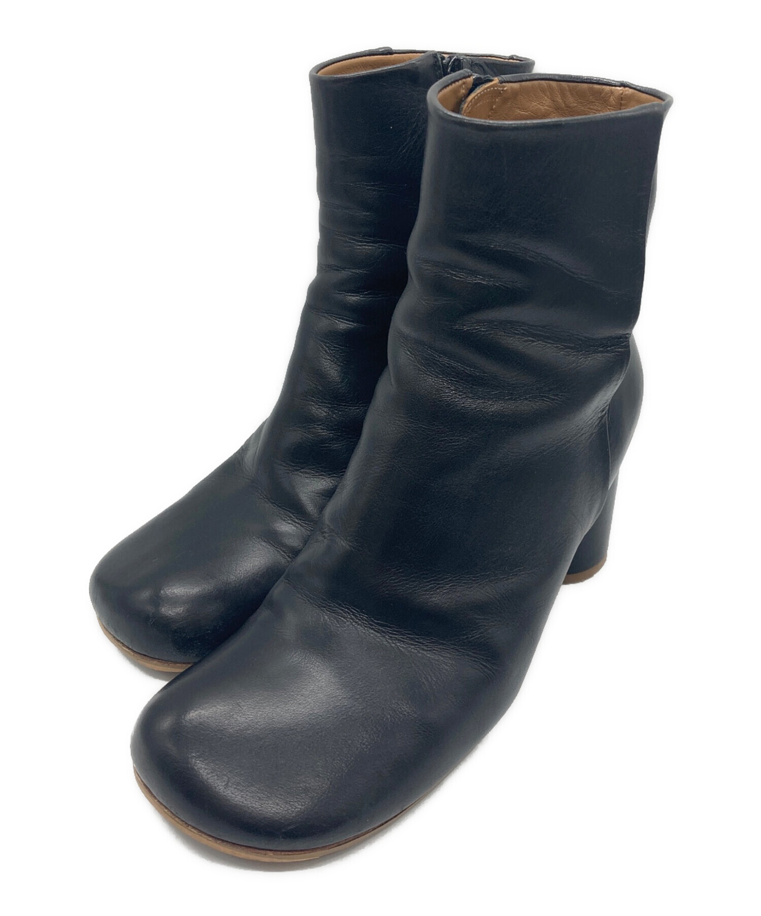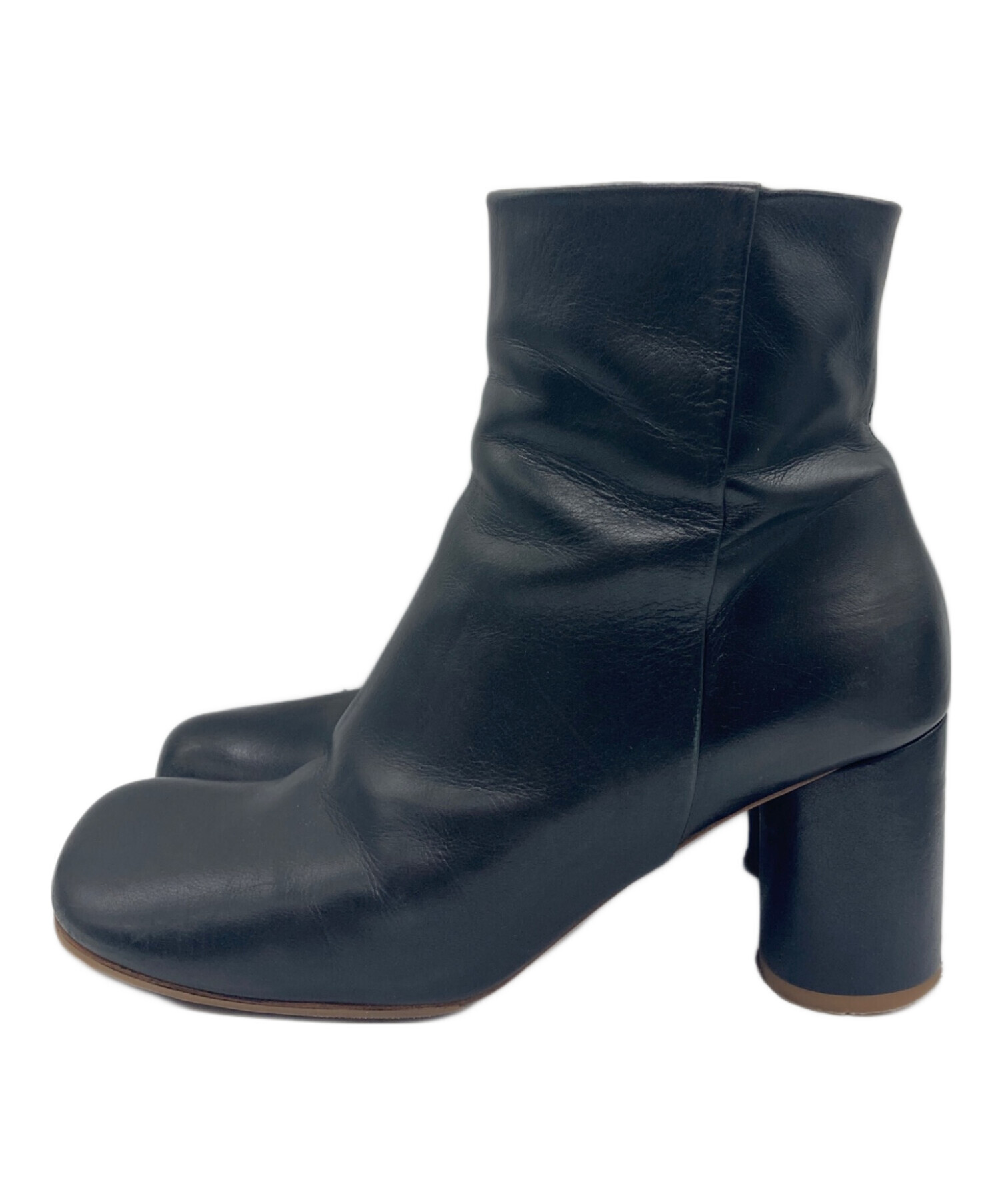 サイドジップ スクエア トゥ レザー ショートブーツ