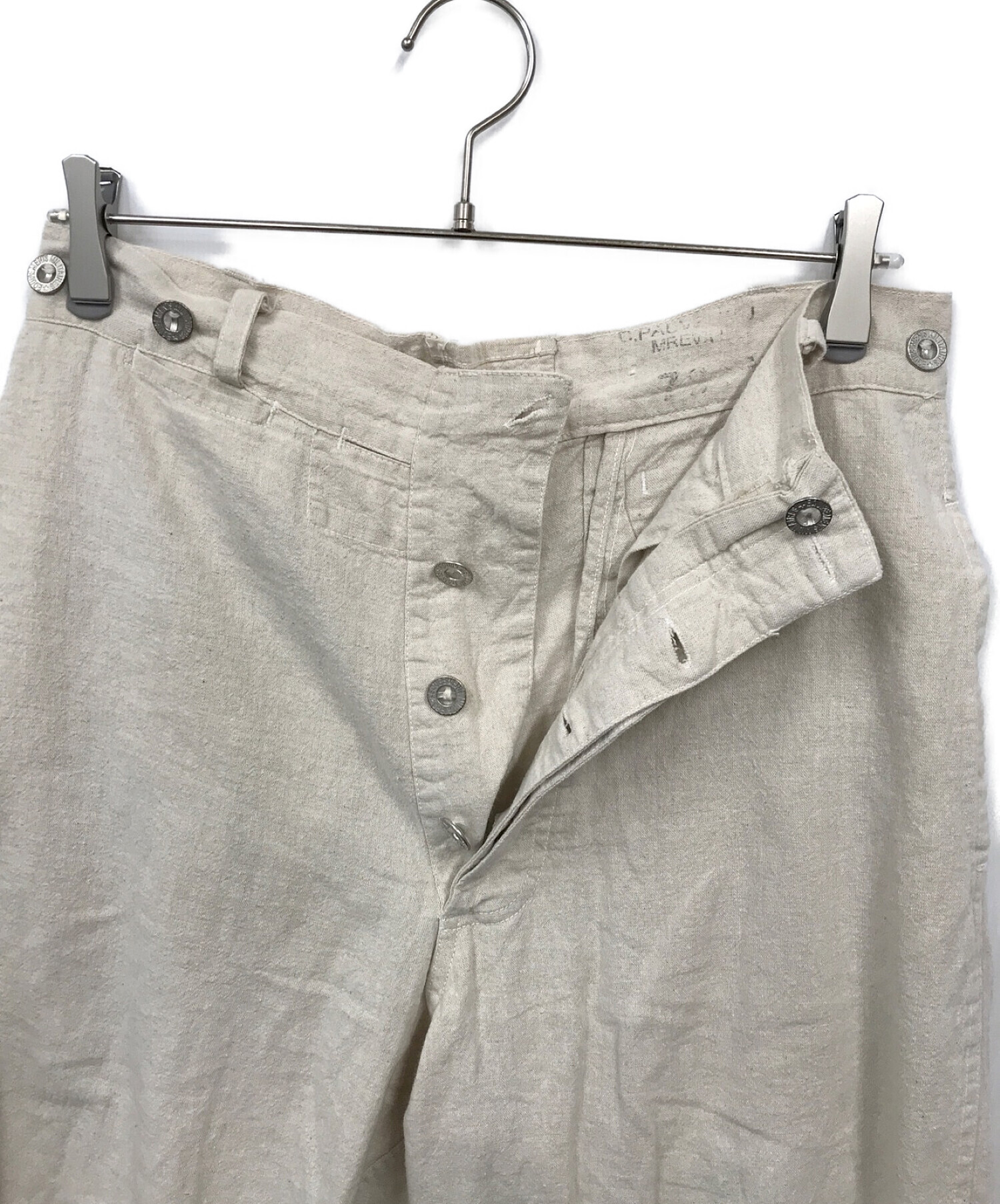 • French Military Bourgeron(フランス軍)French Military Bourgeron (フランス軍) ボージョンリネンパンツ ベージュ サイズ:76の古着・服飾アイテム ボタン欠品