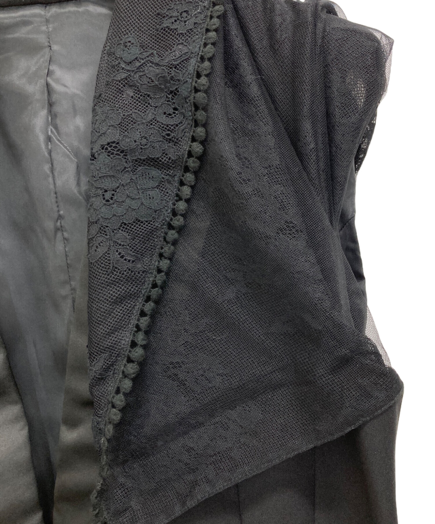 | 素材 | 表地:羊毛63% 絹25% ナイロン12% 装飾部分:ナイロン100% 一部:絹78% ポリエステル22% 袖部分:綿63% ナイロン37% 裏地:キュプラ100% |
