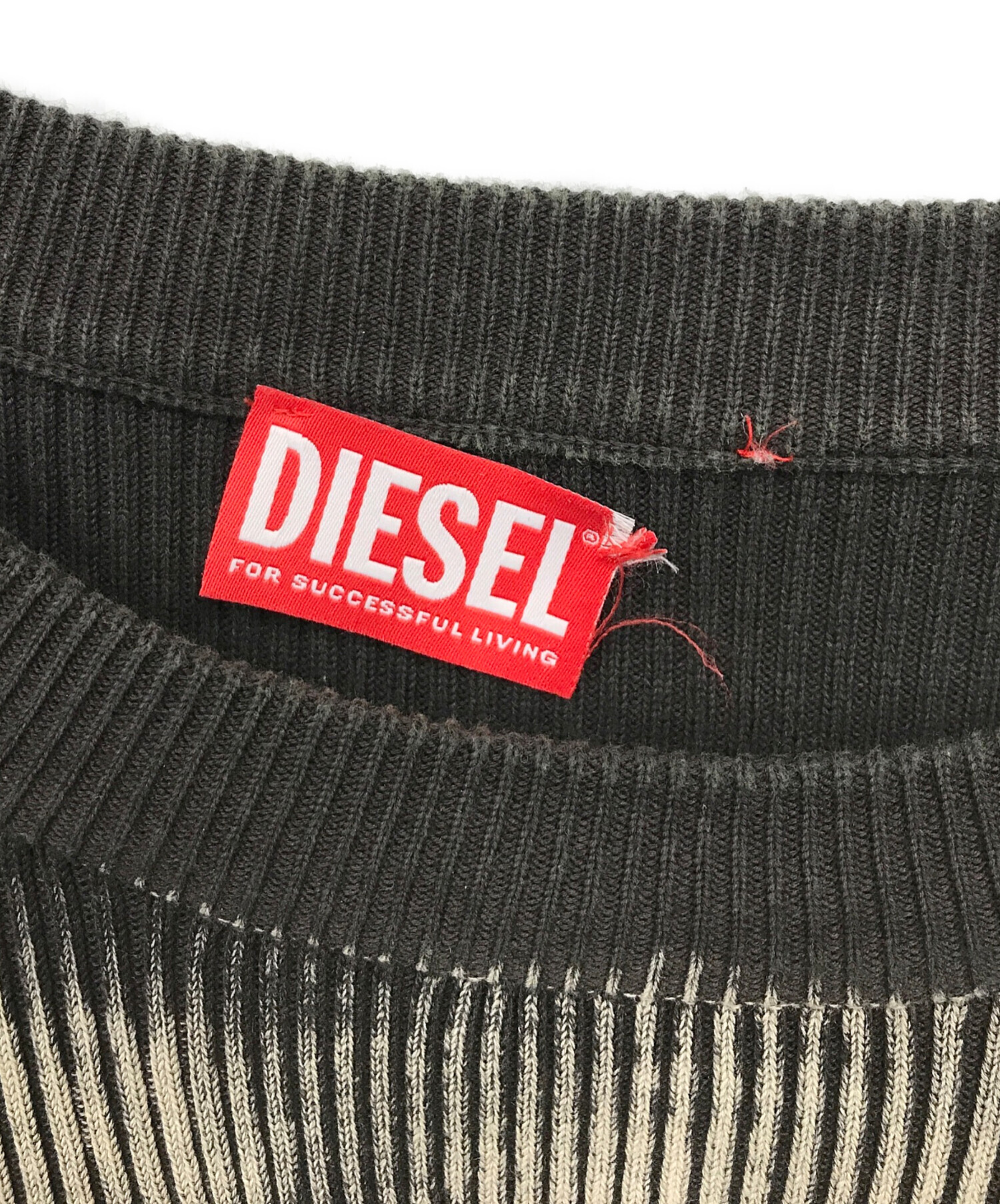 • DIESEL(ディーゼル)DIESEL (ディーゼル) オーバルロゴニット グレー×ベージュ サイズ:XXLの古着・服飾アイテム ブランドタグ片側取れ有