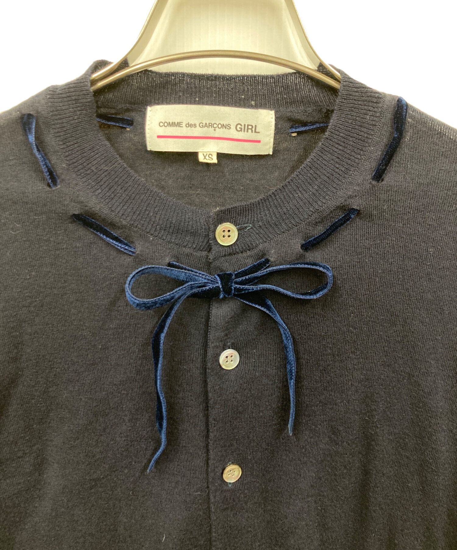 • COMME des GARCONS GIRL(コムデギャルソンガール)COMME des GARCONS GIRL (コムデギャルソンガール) リボンカーディガン ネイビー サイズ:XSの古着・服飾アイテム 予備ボタン付