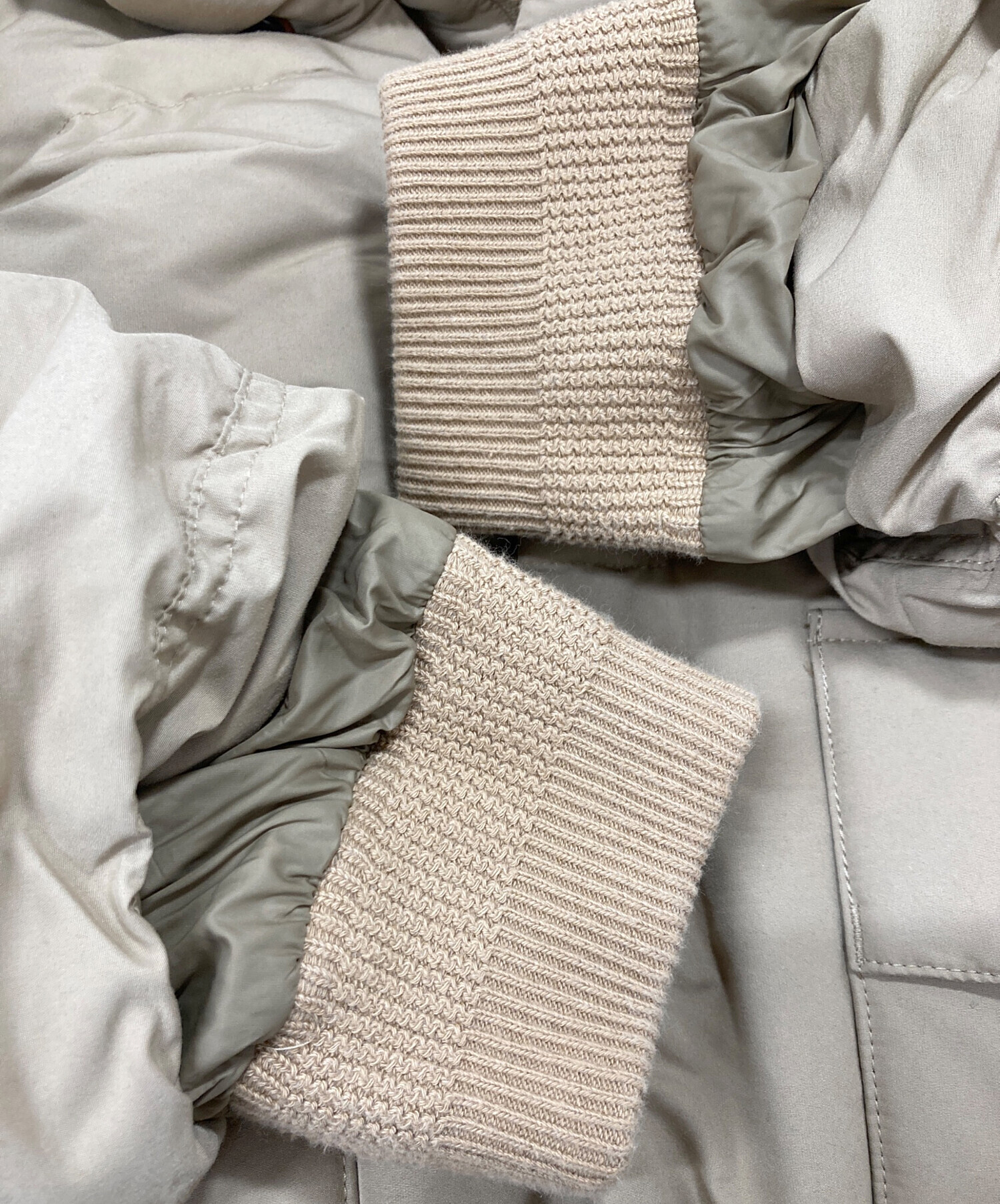 | 素材 | 表地:ポリエステル100% 袖口リブ:綿91% ナイロン8% ポリウレタン1% 胴裏/フード裏:ポリエステル100% 袖裏:ナイロン100% 詰め物:ダウン75% フェザー25% レザー部分:牛革 |