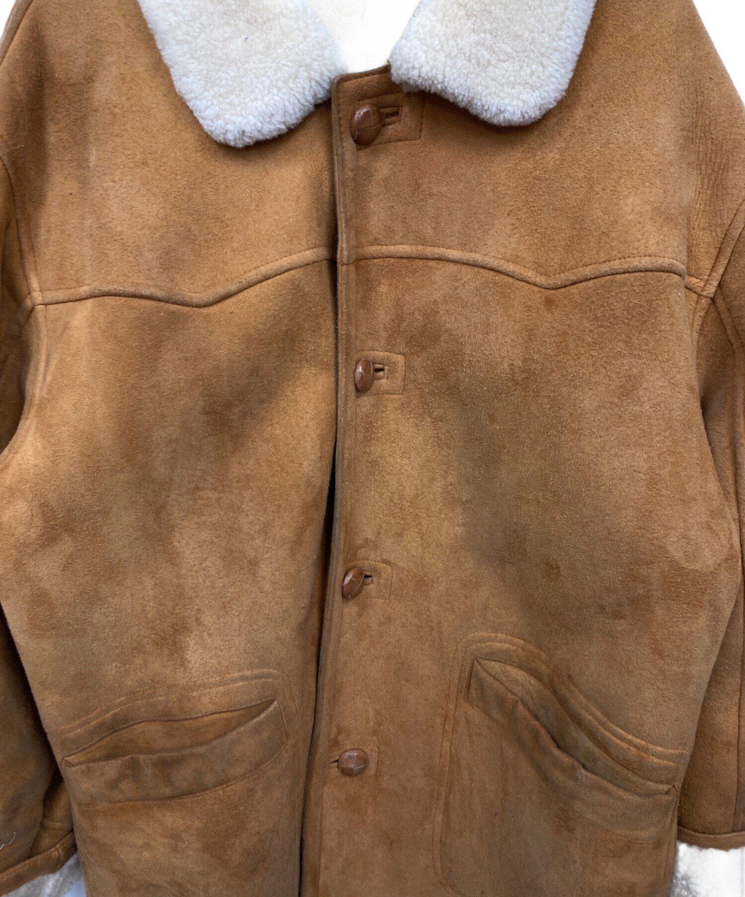 • POINT(ポイント)POINT (ポイント) ムートンジャケット ブラウン サイズ:Lの古着・服飾アイテム 襟元ヨゴレ