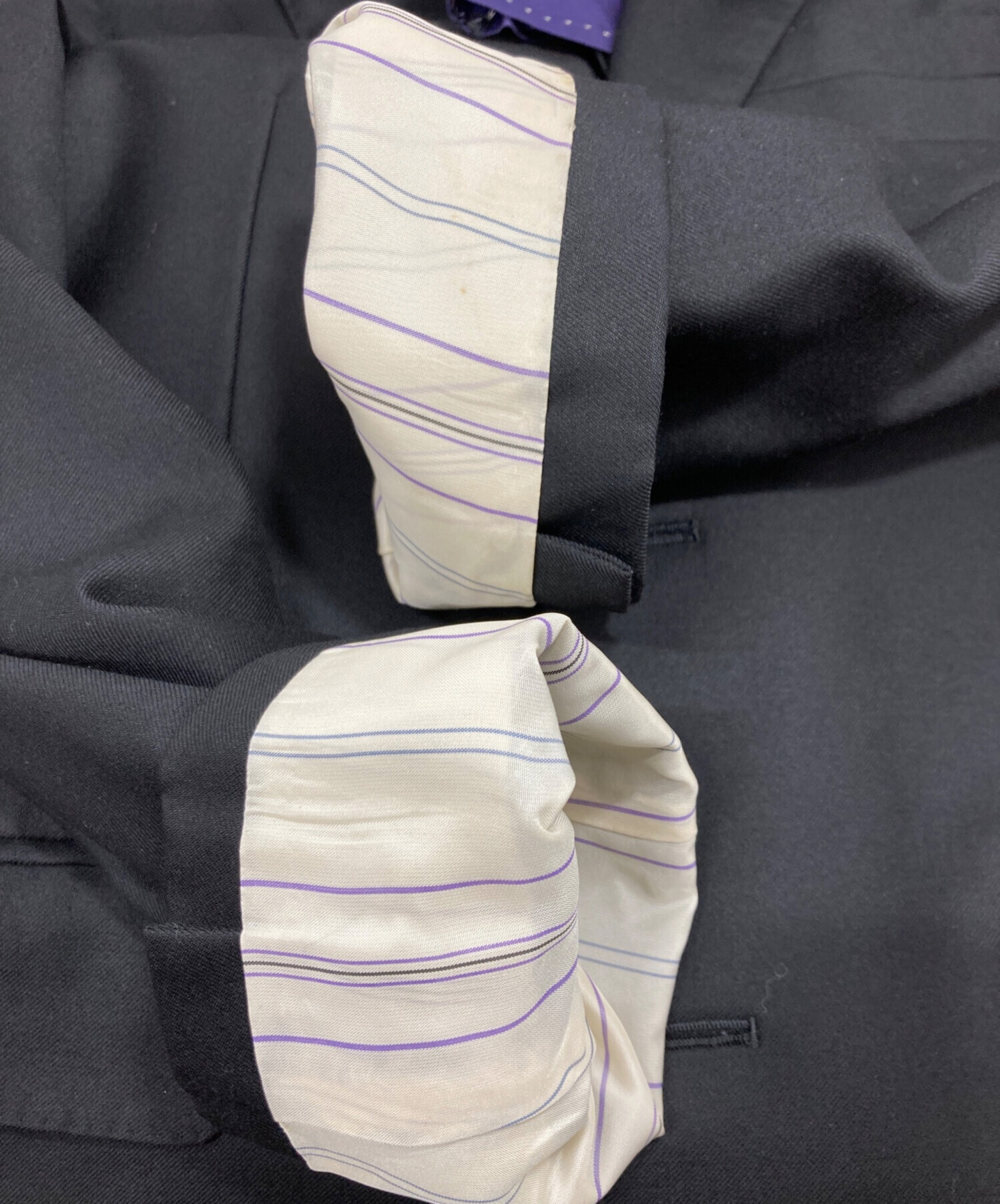 | 素材 | ジャケット 表地:ウール 100% 裏地:キュプラ パンツ ウール 100% |
