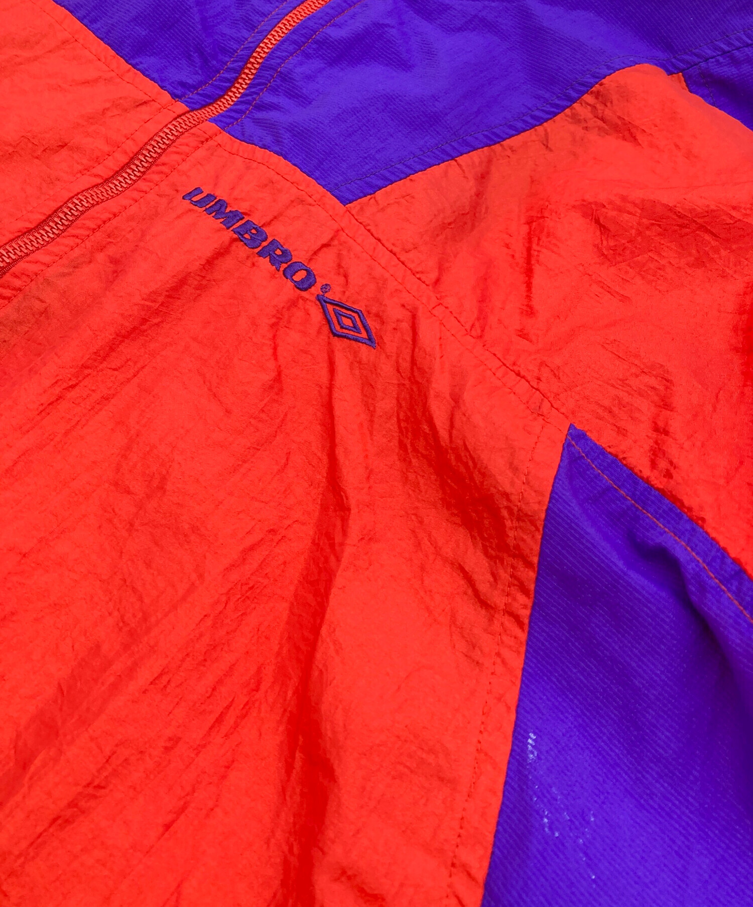 • UMBRO(アンブロ)UMBRO (アンブロ) ハーフジップナイロンジャケット パープル×レッド サイズ:Mの古着・服飾アイテム ヨゴレ